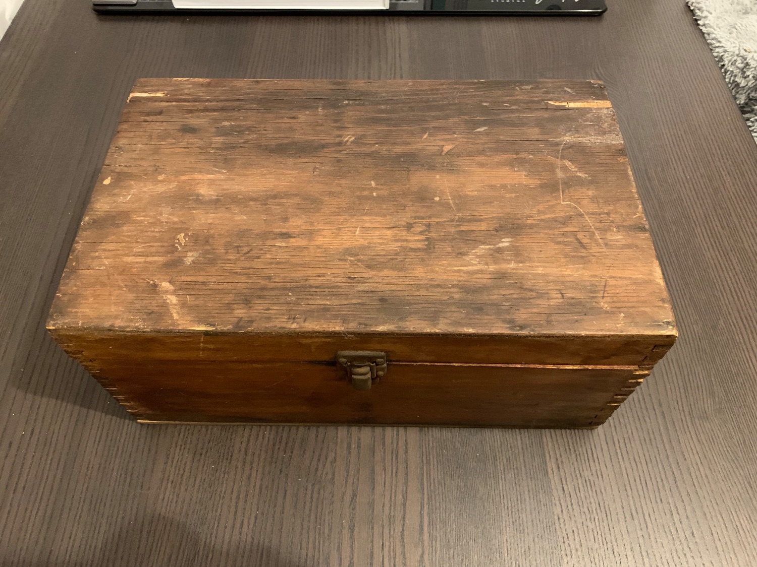 Pour la boite, je ne suis pas encore totalement décidé de ce que j'en fait. Pour le moment elle est rangée dans l'appartement (de toute façon, je n'ai pas d'autre place pour ranger mes outils :D ) en espérant qu'elle puisse évacuer son humidité. Là où je ne suis pas totalement décidé, c'est de savoir si je profite du fait qu'elle se décolle pour refaire son verni et éventuellement remplacer le fond et éventuellement le haut dont le contreplaqué a un peu plus souffert de l'humidité. Ou alors conserver le bois d'origine en ne brossant que les ferrures pour enlever la corrosion et tout conserver d'origine. Puis recollage de la boite et retrouver l'emplacement des cales intérieures présentes mais décollées.