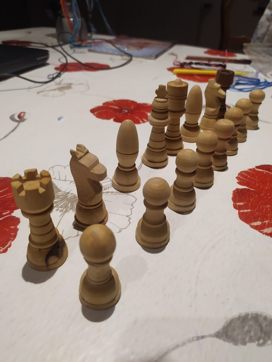 Allez savoir pourquoi, ce doit-être mon côté un peu maso, après quelques essais, je me suis lancé dans la réalisation de pièces pour un jeu d'échec. Rien que ça...!