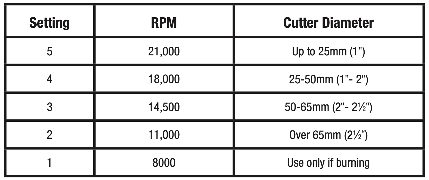 Applicable pour n'importe quelle défonceuse avec une variation de vitesse. Avec l'hypothèse que le moteur est linéaire entre chaque position.