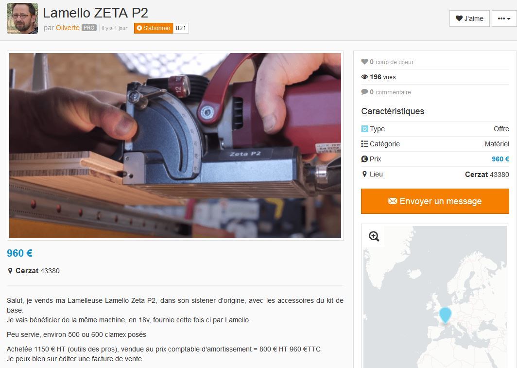 Quatermite a écrit : 01 févr. 2023, 17:27 Autrement si vous voulez sponsoriser un "Créateur de contenu" vous pouvez lui acheter sa lamelleuse: https://www.lairdubois.fr/annonces/1168 ... ta-p2.html