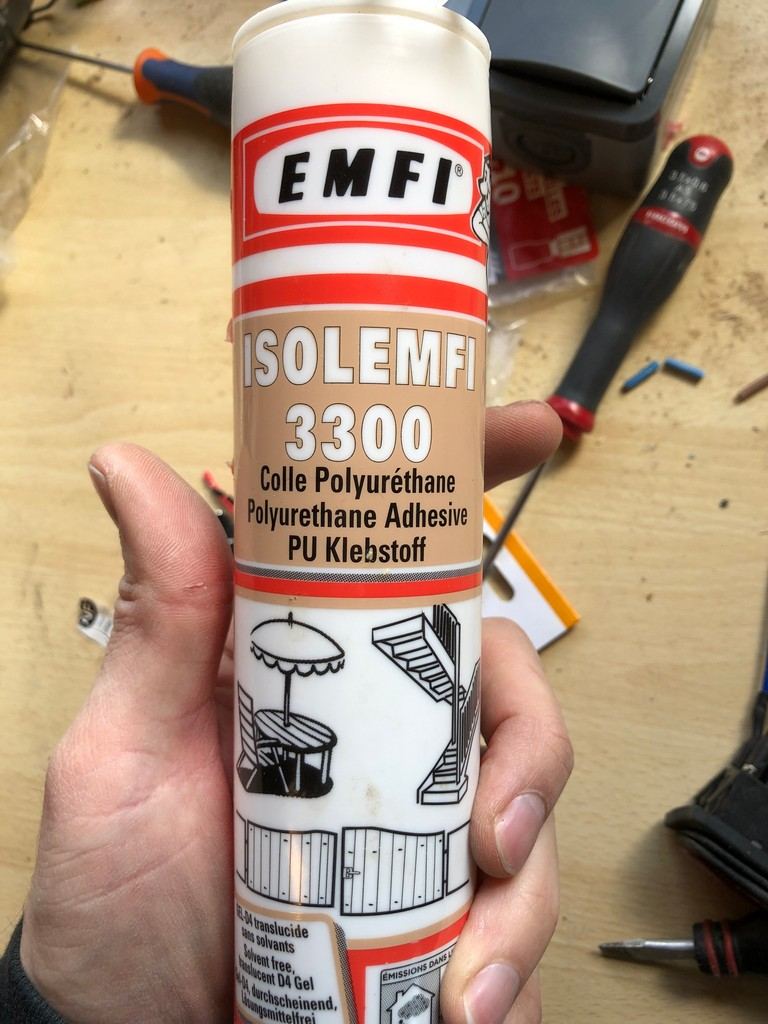 Je trace la prolongation des guides parallèle de la scie pour que le chariot puisse continuer sur l’établi : et je fait les défonces : puis je fixe les rails a la colle PU : un petit nettoyage s'impose !