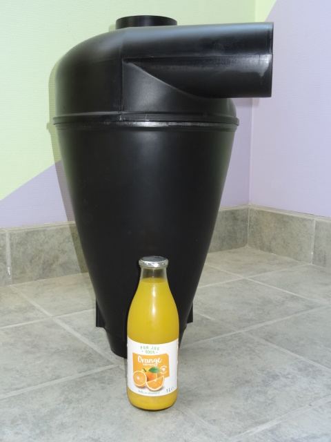 Le cyclone XL Dust Commander photographiè à coté du jus d'orange étalon déposé tout récemment au pavillon de Breteuil par FWD.