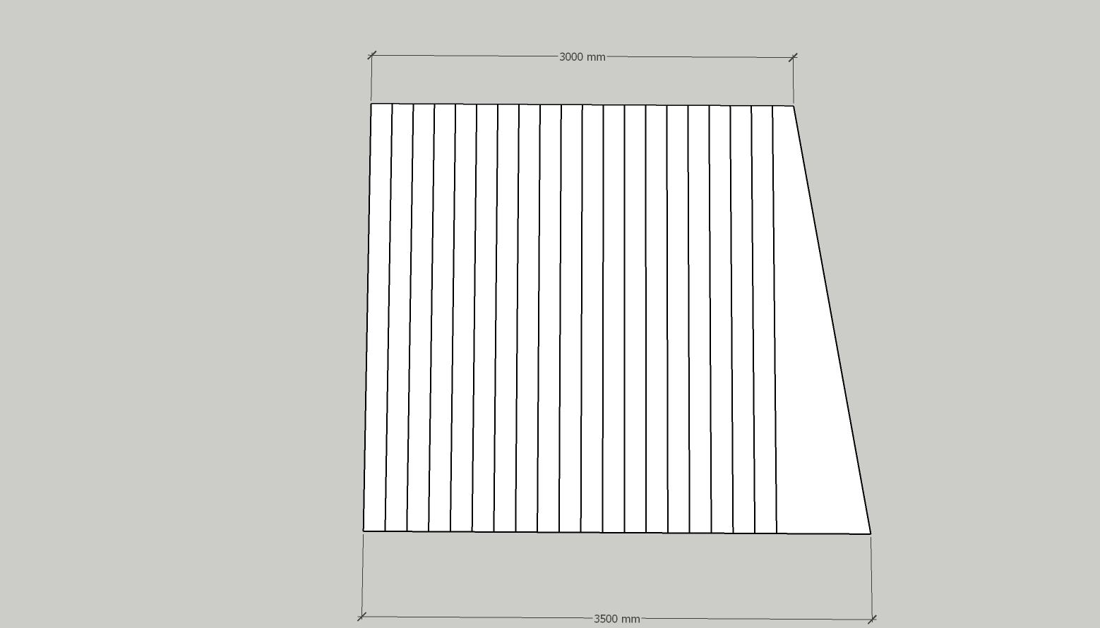 Si je démarre contre le mur de gauche, on met vite en évidence 2 problèmes : une coupe étroite devant la cheminée (dans l'idéal il ne devrait pas y avoir moins d'une demi lame) et un petit triangle en bas à droite (ce que j'appelle une coupe dégueulasse panda ^^) Je décale l'ensemble pour avoir une lame presque entière devant la cheminée (ce que propose Lamouette je crois) Plus de triangle à droite mais une coupe étroite le long du mur en haut à gauche