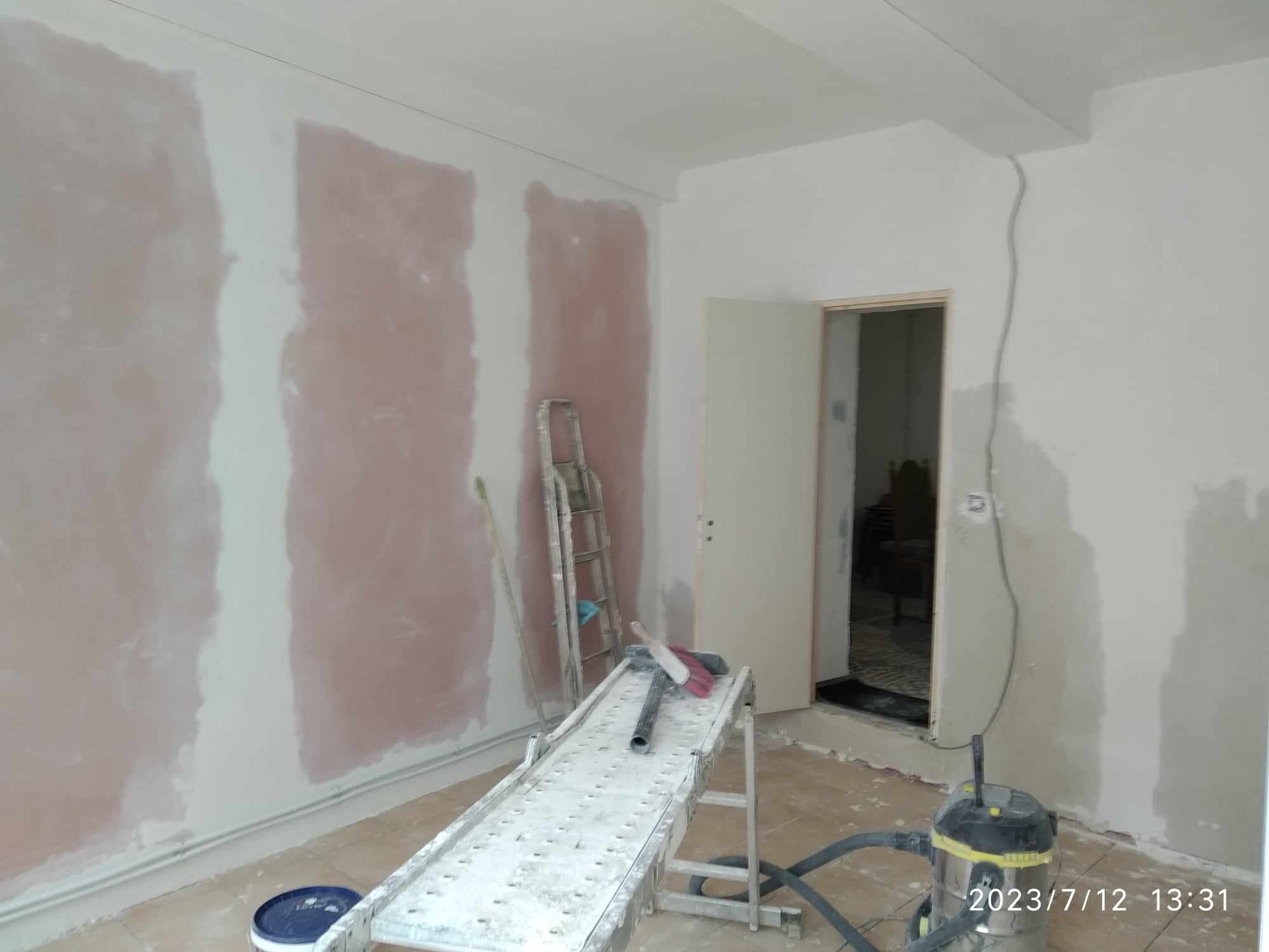J'aurais du avoir fini cette semaine si des "problèmes familiaux" ne s'étaient pas invités dans le chantier. Résultat, seulement une coupe de peinture de mise. Il me reste à passer la seconde, ensuite poser le Quickstep, les plinthes et les chambranles de portes et enfin les encadrements de fenêtres.