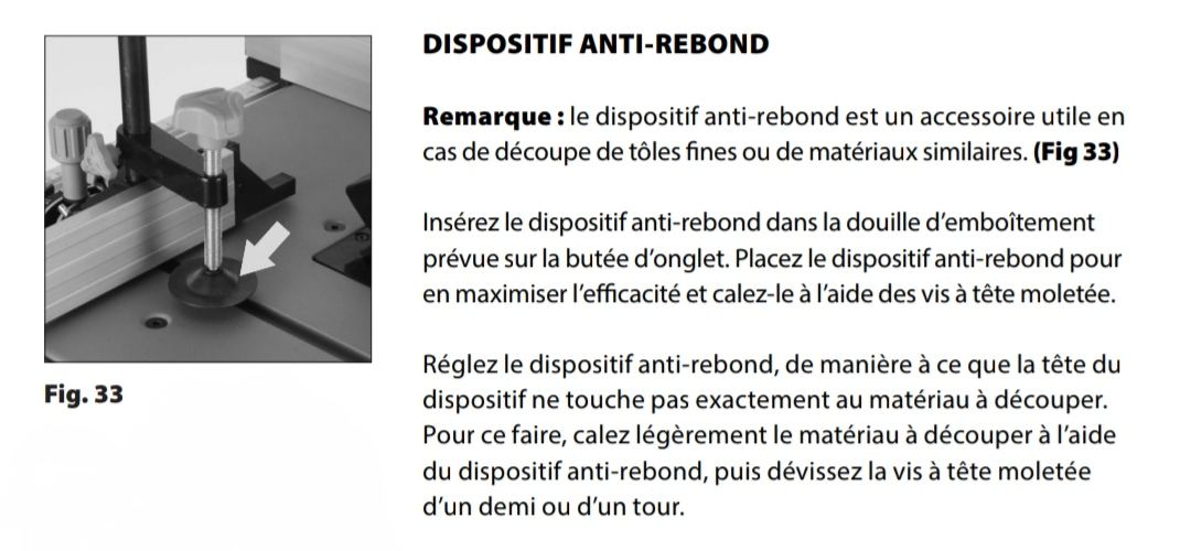 Y'a un presseur sur le guide d'onglet ? Une fois la pièce pressée sur la table, comment on fait pour pousser la pièce vers la lame ? La pièce et le guide sont coincés non ?