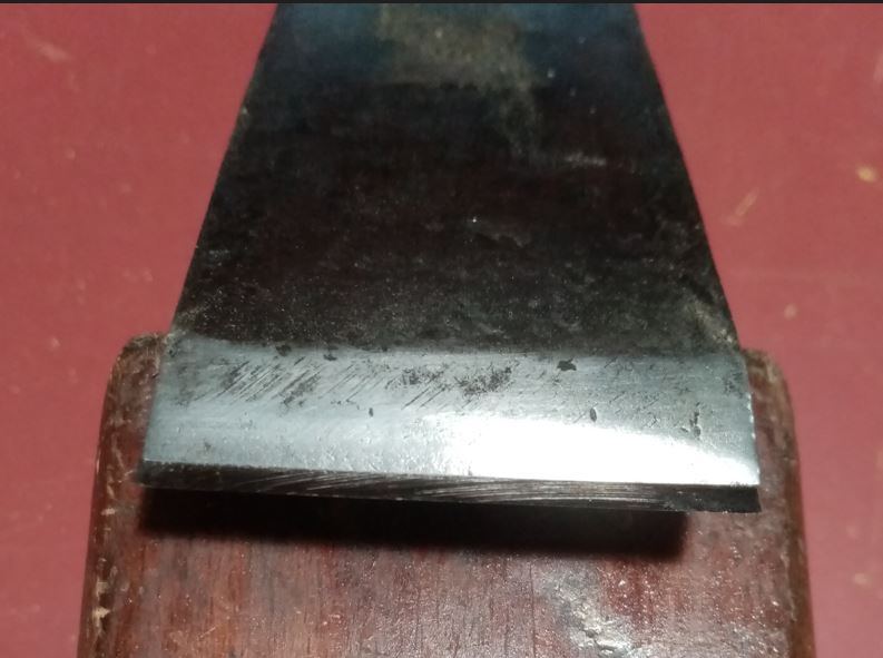 rectification de la semelle, rebouchage d'un trou., recollage pièce d'appui arrière et de la corne avant ; affutâge du fer, et ajustement contre-fer au final, agréable à utiliser, notamment pour la glisse de la semelle et la position des mains, plus confortable qu'un Goldenberg classique..!