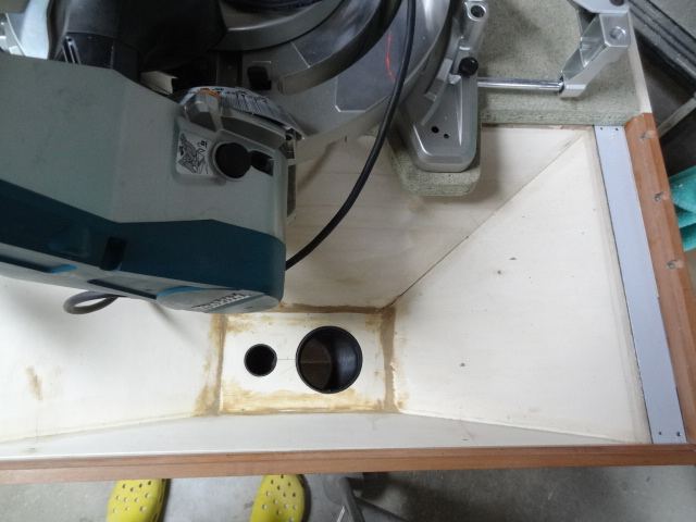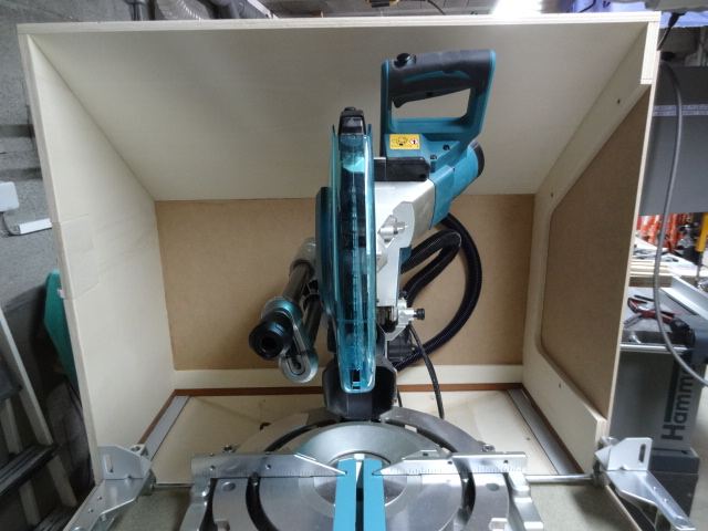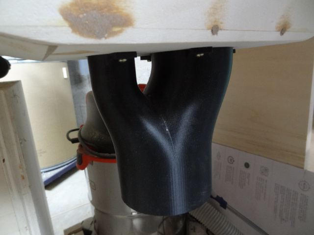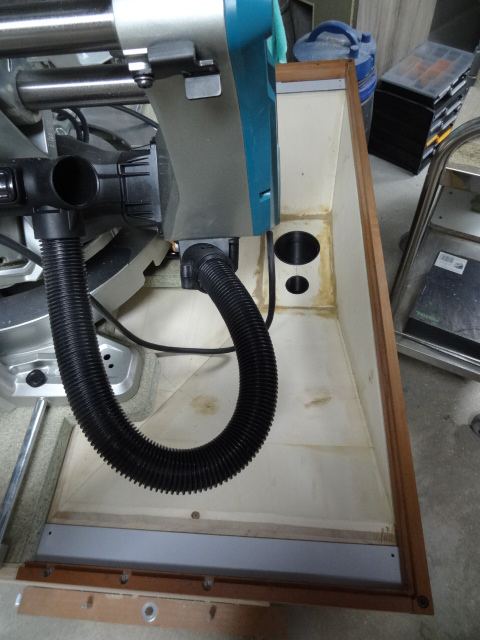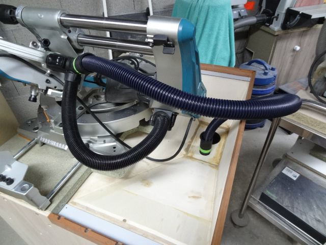 Tout d'abord j'ai changé de scie au printemps dernier et ai opté pour une MAKITA LS1219 (305 mm) qui dispose à l’origine d'un excellent système d'aspiration. Peut être le meilleur et bien des crans au dessus des autres systèmes.
