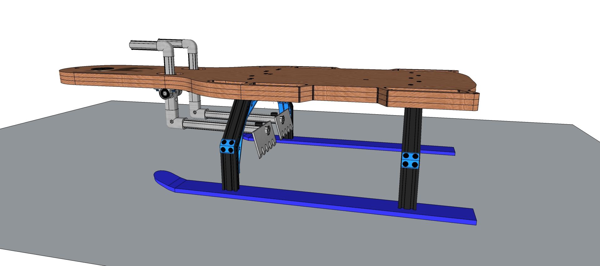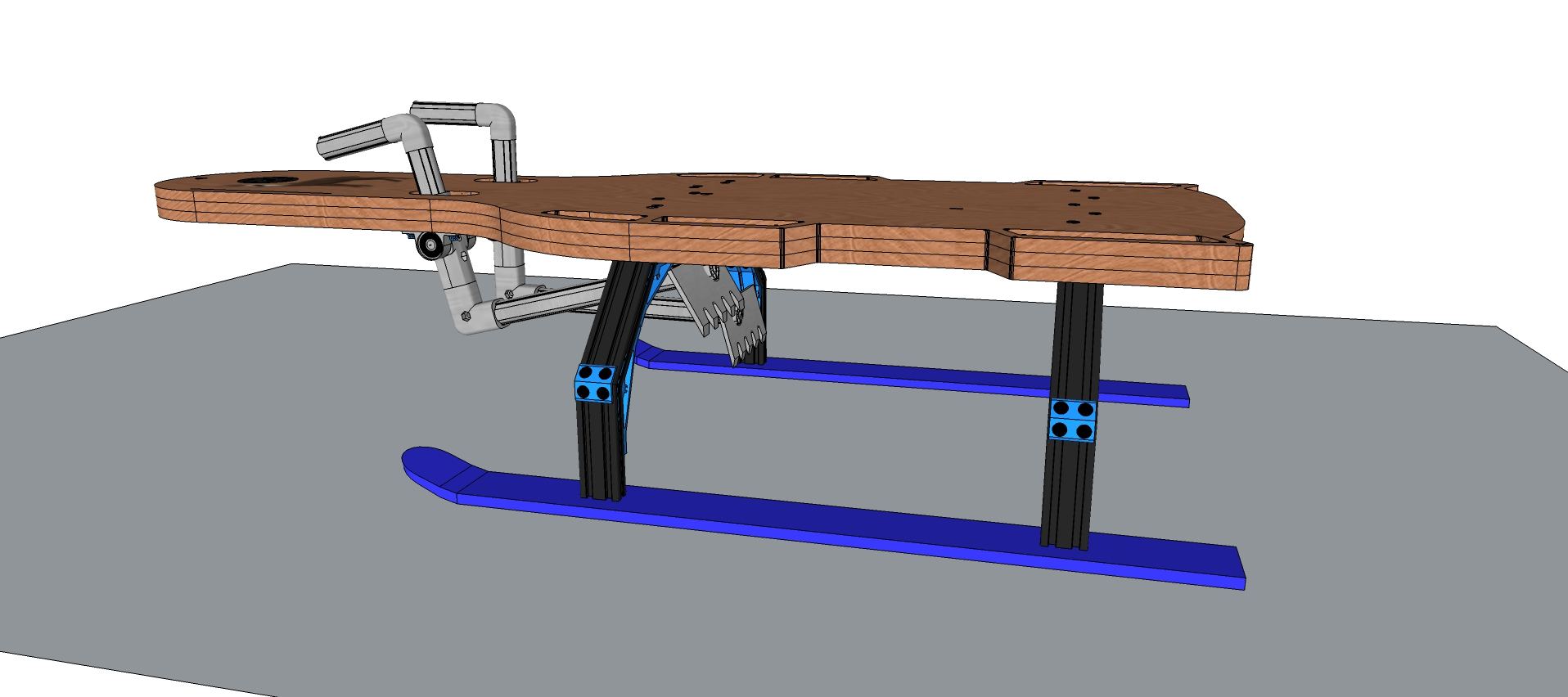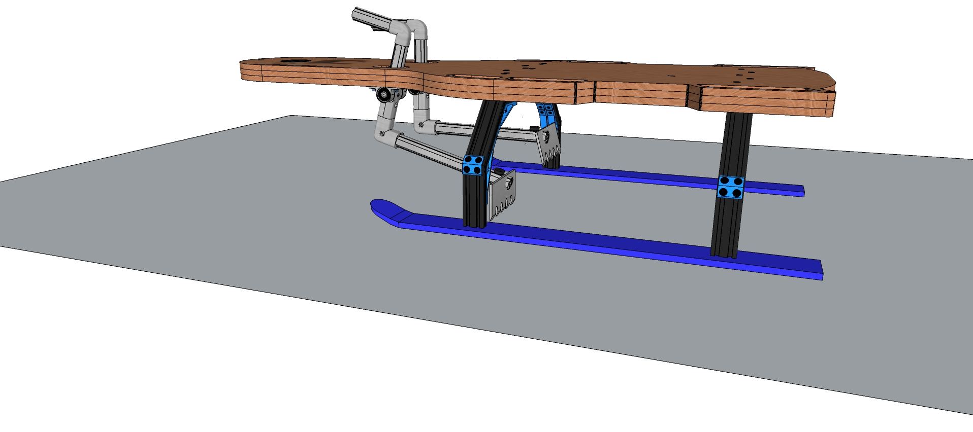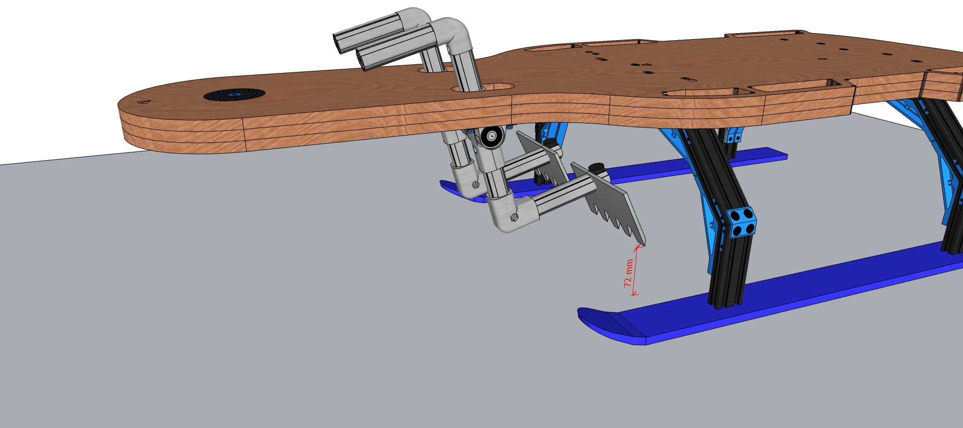 Les skis, ils ne sont pas devant le frein et ils ne sont pas solidaires des petins, ce n'est pas les skis qui empêcheront les freins de planter quand ils vont s'engager dans la neige et qui font que les freins reviendront en position de repos quand l'utilisateur relâchera les manettes. Les skis loin des freins et non solidaires, c'est comme si tu utilises le fer d'un rabot démonté et que tu dis "c'est un fer de rabot, sur un rabot ça plante pas donc le fer seul ne va pas planter". Ou comme si tu dis il y a de la semelle devant le fer, ok elle est à 3cms mais ça va limiter l'arrachement. Bah non, ça ne marche pas.