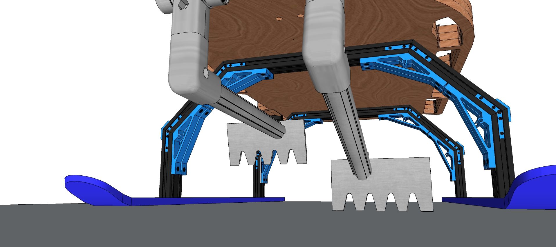 En, tâtonnant sous sketchup, j'ai choisi l'inclinaison des pelles par rapport au tube horizontal pour qu'elle soient à la verticale au moment où elles rentrent en contact avec le sol.