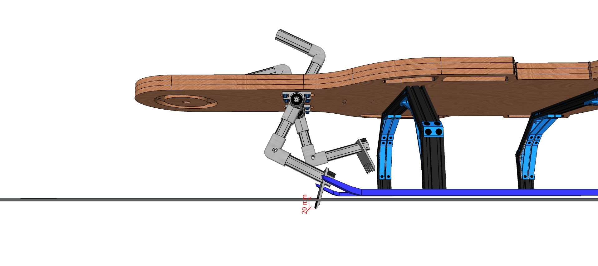 IL est vrai que sur ma première version, j'avais opté intuitivement pour un tube en-dessous allongé justement pour reculer les pelles. Effectivement, on se retrouve sur un choix entre bras plus court pour plus de puissance, mais position plus avancée des pelles, ou pelles plus en arrière mais moins de puissance. Je reste convaincu que c'est le manque de mordant des pelles plus que le manque de puissance qui est à l'origine du problème. Tout est affaire de compromis!
