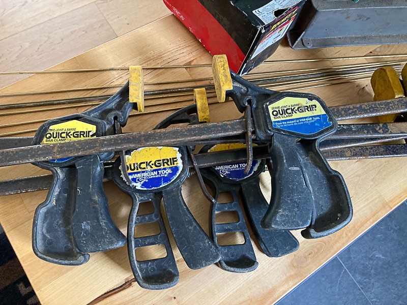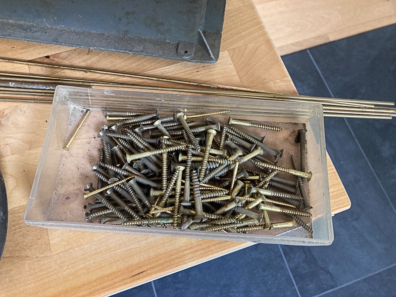 12€ sur 2 stands différents, plutôt content. Un lot de vis et baguettes laiton, c'est joli le laiton Quatre serre-joints US une main pré-Irwin, à 1€ pièce, même un poil grippé ce sera parfait après une séance d'esthéticienne/sauna/huile de massage