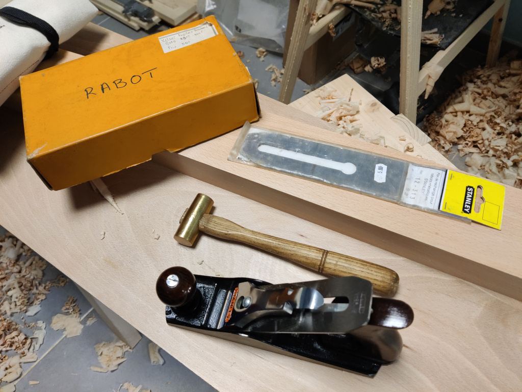 Et même une tête de marteau en cuivre au milieu d'un peu de Facom qui trainait. Plus qu'à lui faire un manche pour pouvoir taper sur des rabots... mais en douceur hein