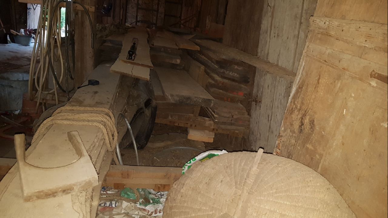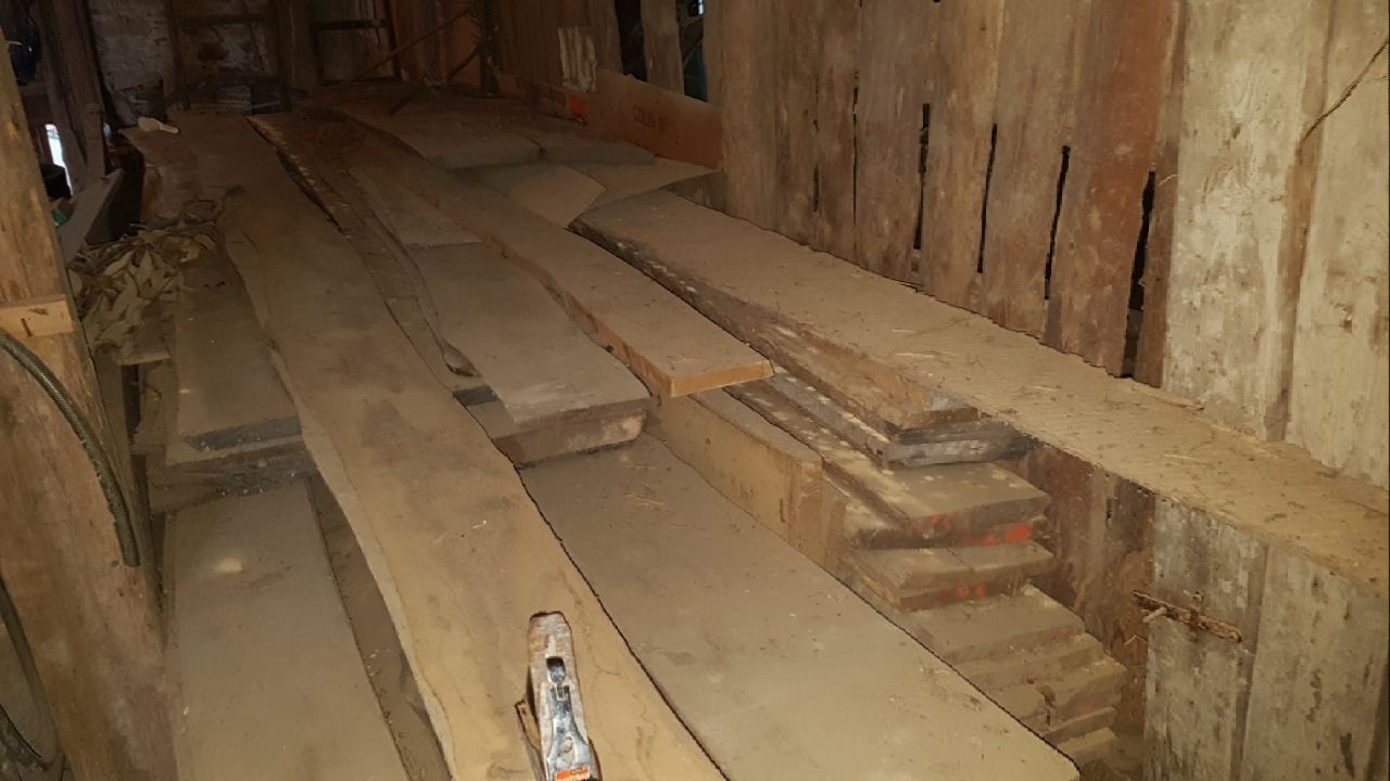 J'ai un cas de conscience car ce sont de belles planches parfaitement droite sur 6m. Mais sinon j'ai une autre option. Je mets un coup de tronconneuse et la longueur passera à 2x 3m50 ou 4m plus facile à transporter et coût plus faible.
