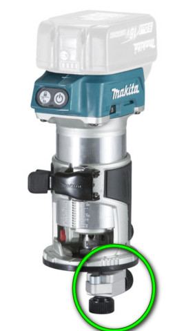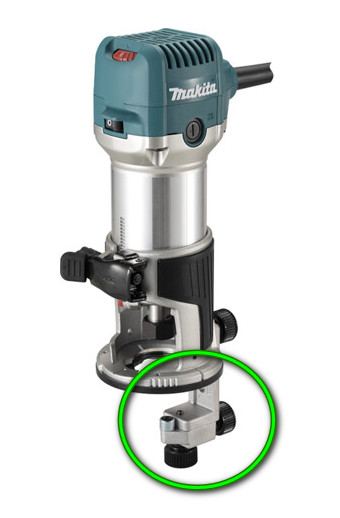 Je règle la hauteur de sortie de la fraise en plaçant des petits cales sous la semelle. Il me faut moins de 20 secondes pour faire l'opération.