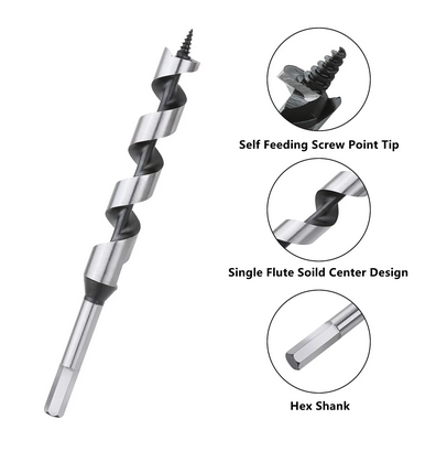 c'est le genre de tarière que j'utilisais aux scouts, mais à la main : la vis permet justement de ne pas se préoccuper d'avoir à appliquer une pression axiale, et ça demande du couple. Je n'ai pas bien compris comment on pouvait utiliser ça pour de l'électroportatif qui va avoir une vitesse de rotation très importante, mais pas forcément beaucoup de couple.