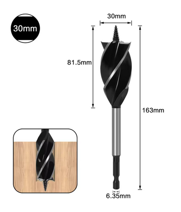 La "grosse" mèche je l'ai repris avec une clef à molettes qui m'a servi de manche comme sur une tarière manuelle et là ça fonctionne bien, le trou est propre mais c'est évidement pas très rapide. La "petite" mèche j'ai réussi à la fixer sur un manche à tarauder et ça fonctionne aussi. (Les deux font 30mm mais il y en a une qui est plus lourde et longue que l'autre)