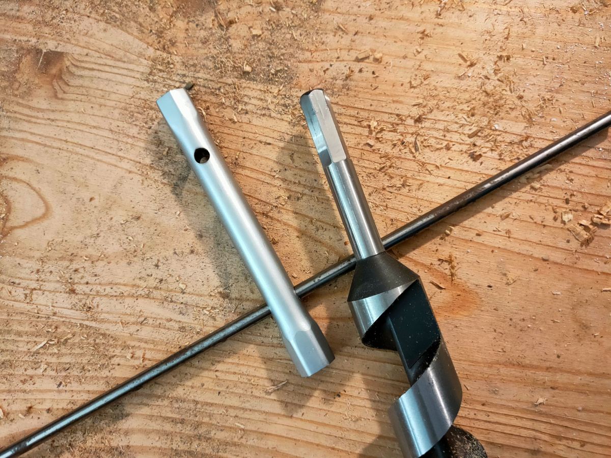 Je vais voir si je peux utiliser un gros manche à taraud pour m'en servir comme tarière manuelle.