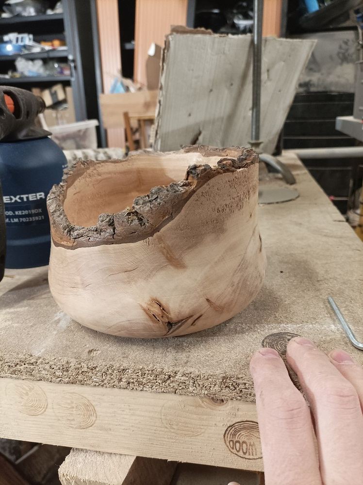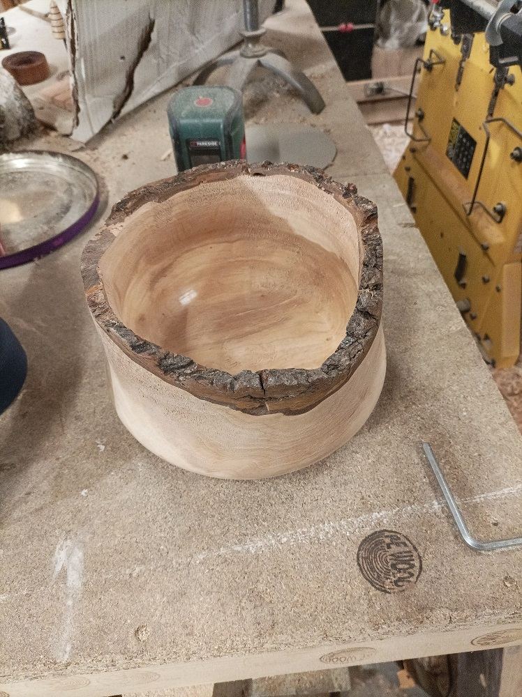 Alors si tu parles des fibres arrachées là où ça fait des petits trous, c'est que le bois commençait à être un peu abîmé / pourri à cet endroit, je n'ai pas pu faire autrement, sinon le bol finissait de la taille d'un gobelet...