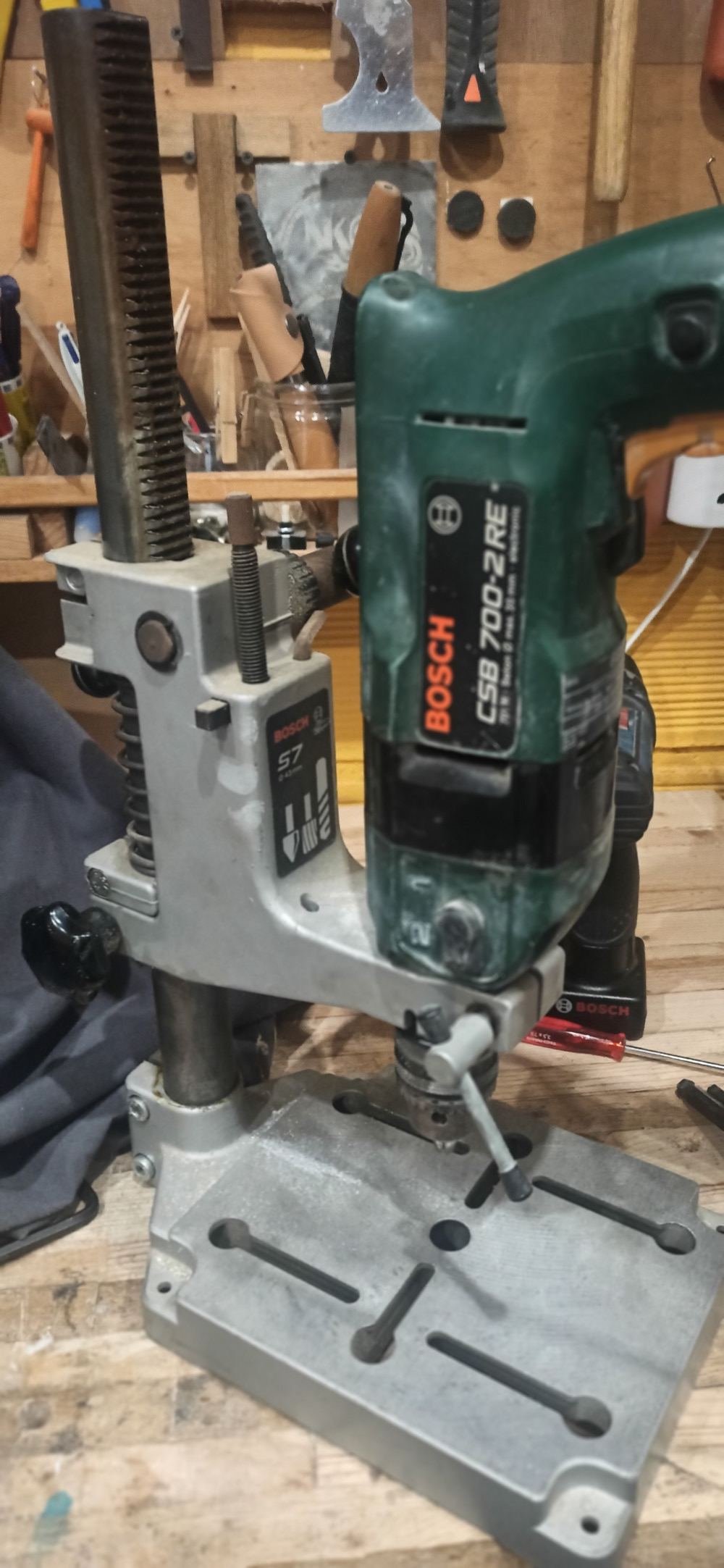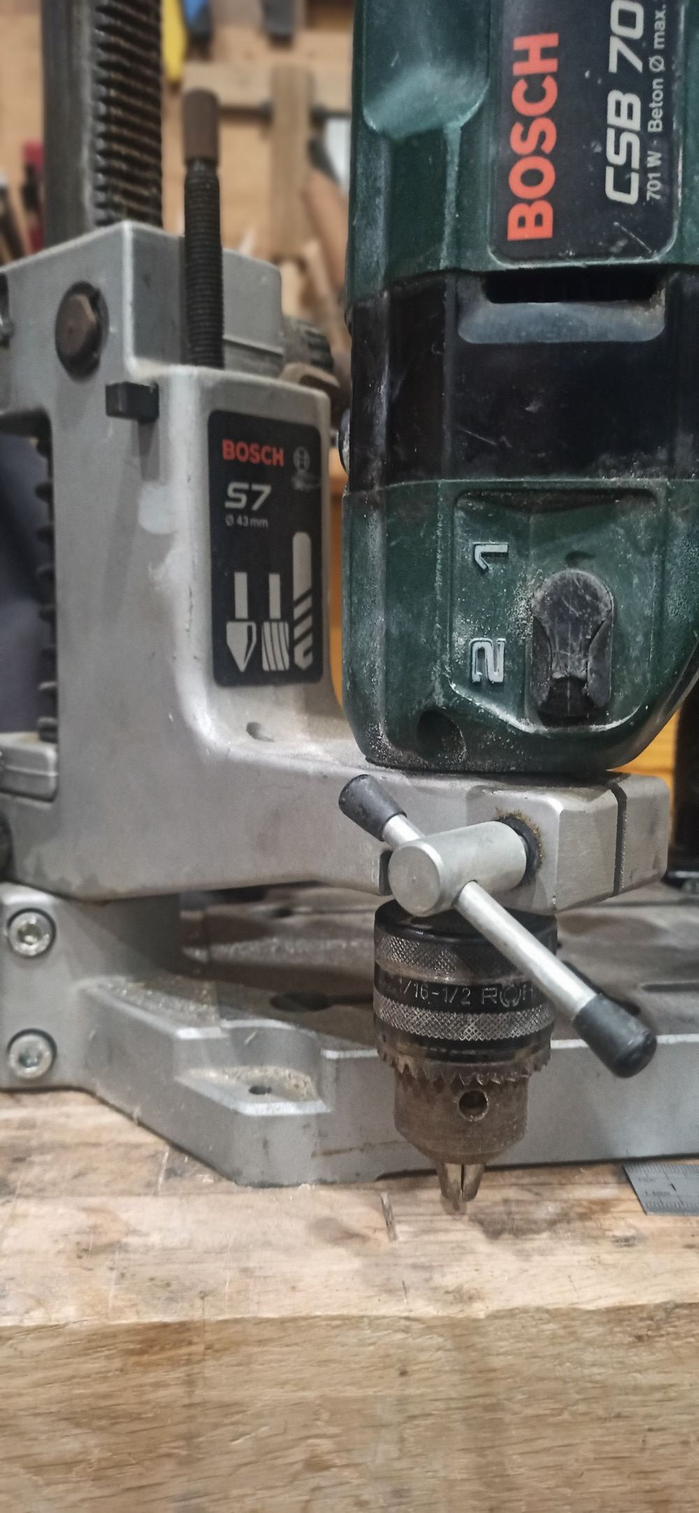 J'ai le même support que la 1ère photo, et le bout du mandrin de ma perceuse arrive à environ 1cm (peut être quelques mm de +j'ai pas mesuré) de la planche, je ne sais pas quelle hauteur fait ton gabarit, mais ça ne devrait pas être beaucoup mieux, peut-être même pire.gug42 a écrit : ↑09 déc. 2024, 17:14
