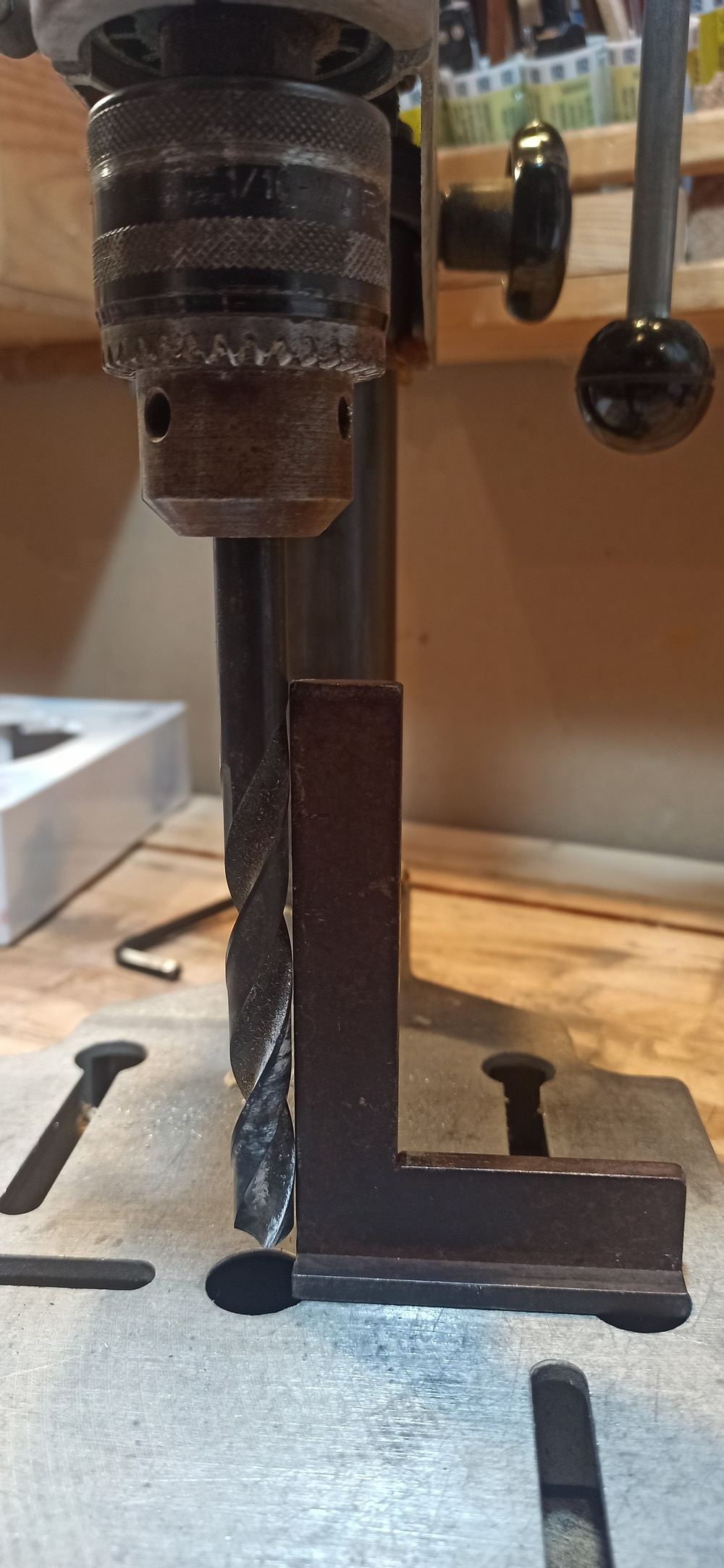 Sur le support mobile colonne pour perceuse ... un sujet auquel je n'avais pas pensé : des forets longs sont nécessaires sinon ils ne touchent même pas la matière en dessous ... en effet le pied entraîne une certaine distance entre la tête de la perceuse et le matériau à percer .... Et les forêts longs en 2,5mm, j'en ai mais c'est très fragile (logique) ... et ca débit facilement (logique)