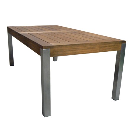(Désolé pour l'emprunt à la banque d'image mais je ne sais pas utiliser sketchup). A moins de maîtriser un peu le travail du fer et, de fabriquer des ferrures spécifiques j'ai, comme toi, des difficultés pour trouver le mode d'assemblage performant en suivant ta conception, sachant que le seul point de liaison est sur tes coupes d'onglet. C'est une table de jardin donc j'éviterai au maximum les assemblages à rétention d'eau.De plus j'éviterai d'avoir le piétement strictement au même plan que le dessus en cas de variation dimensionnelle du bois.