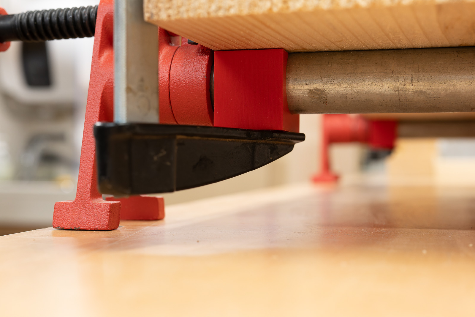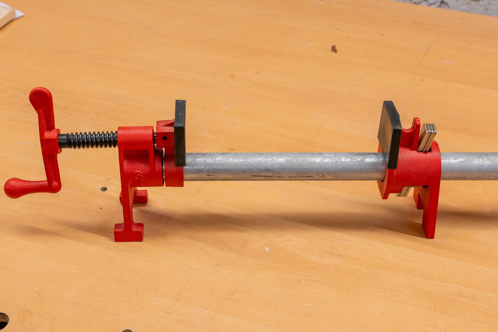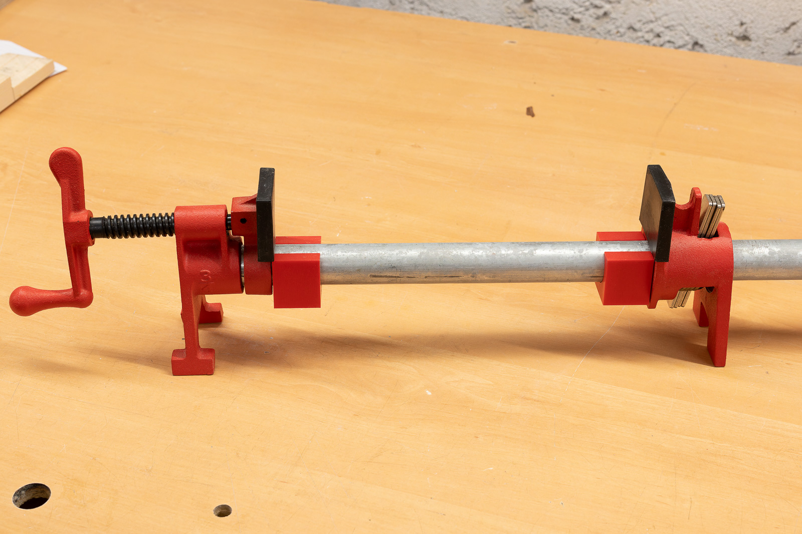 Pour coller mes panneaux, j'utilise des Bessey BPC-H34, qui se fixent sur un tube de plomberie de 3/4" :