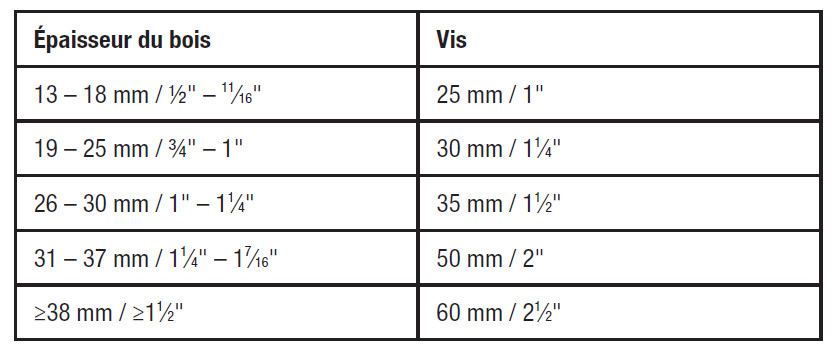 A votre avis, quelle longueur pour les vis, 25 mm vous semble-t-il correct?