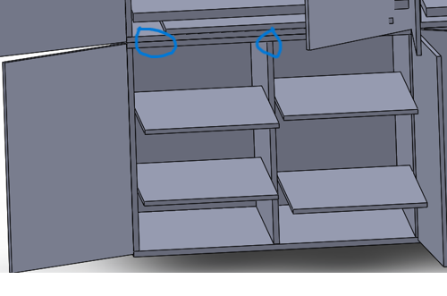 - Sur tes caissons inférieurs, il y a un montant central qui supportera la charge de la tablette des caissons supérieurs. Alors à mon avis ça ne sert à rien de partir sur du cp de 30mm, tu vas juste te ruiner.