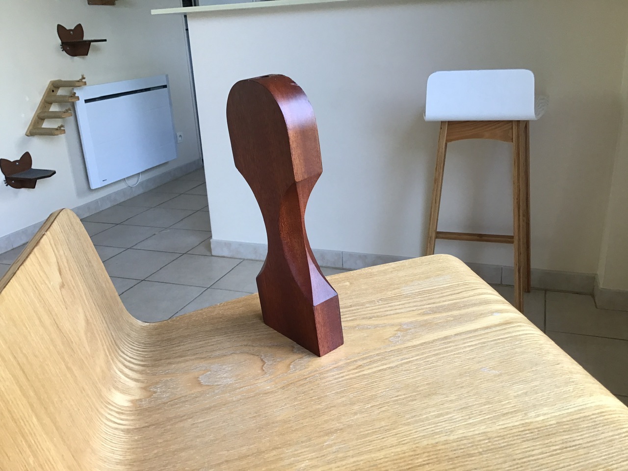 Lors de la fabrication, ce qu'il a préféré c'est creuser la mortaise. Cogner au maillet, ça lui plaisait bien![]()