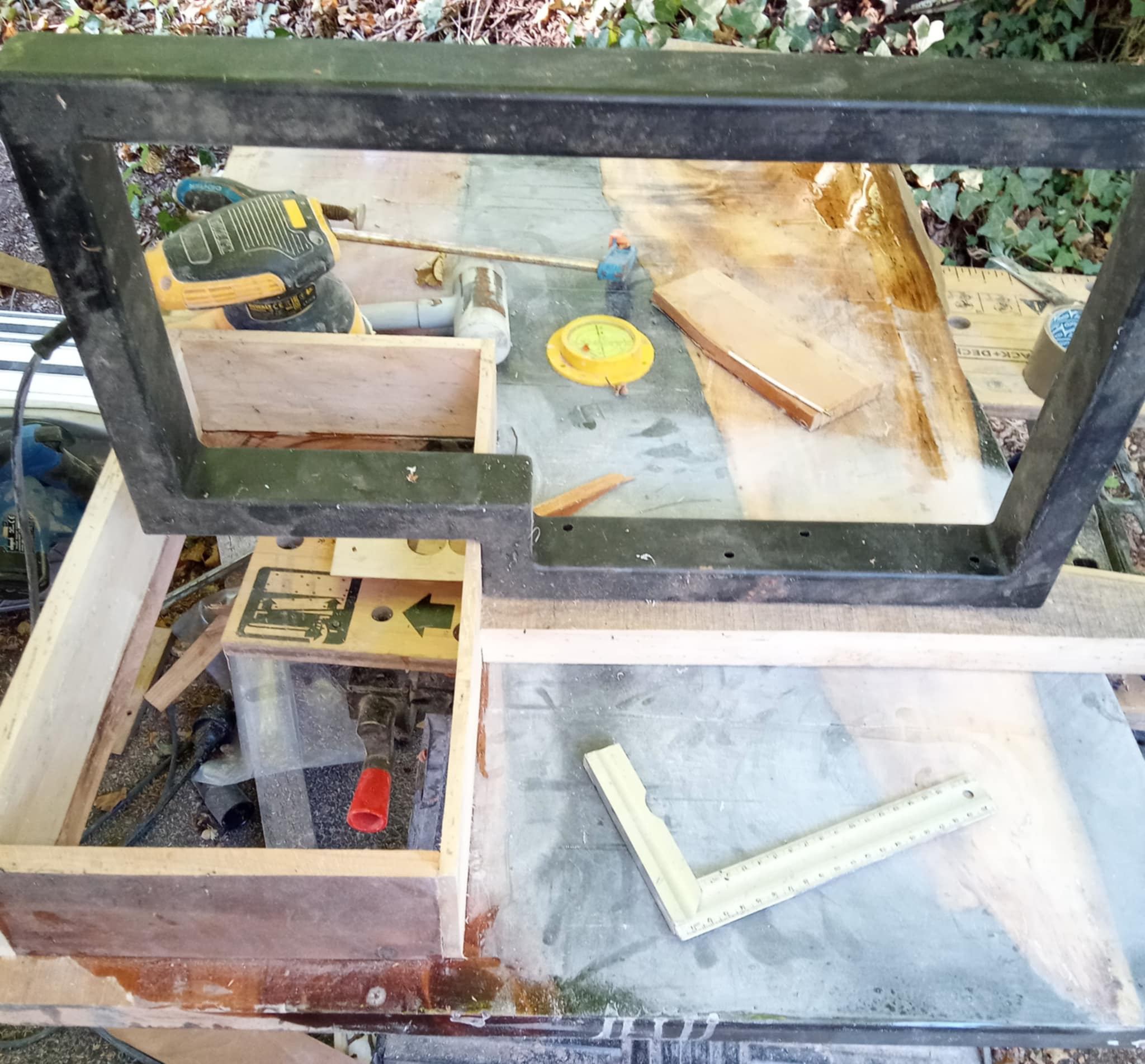 j'ai quelque retouche de peinture a faire encore, le bois qui recois les pieds va etre peint en noir .