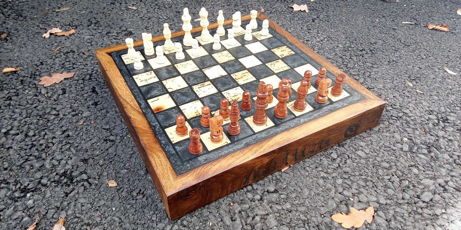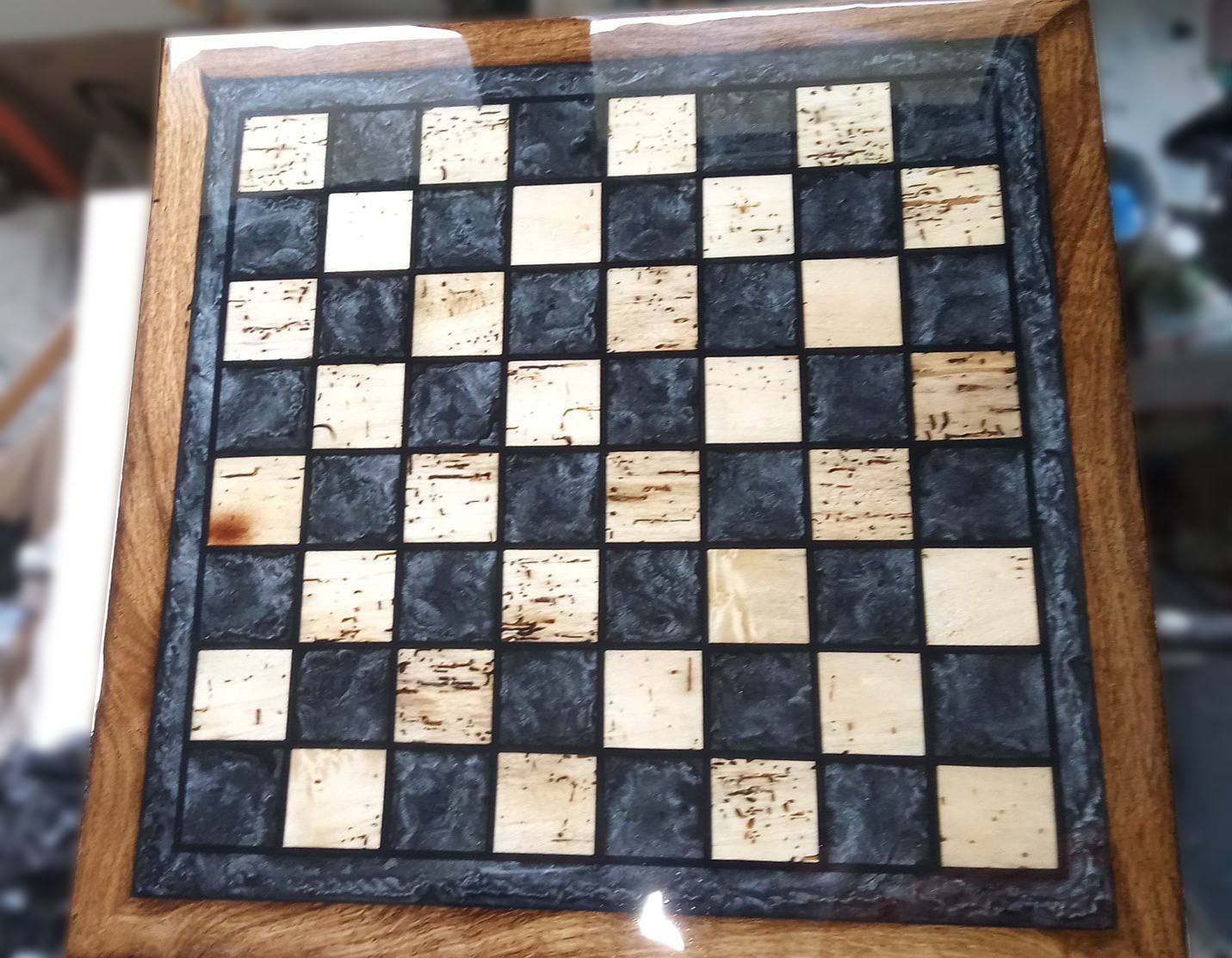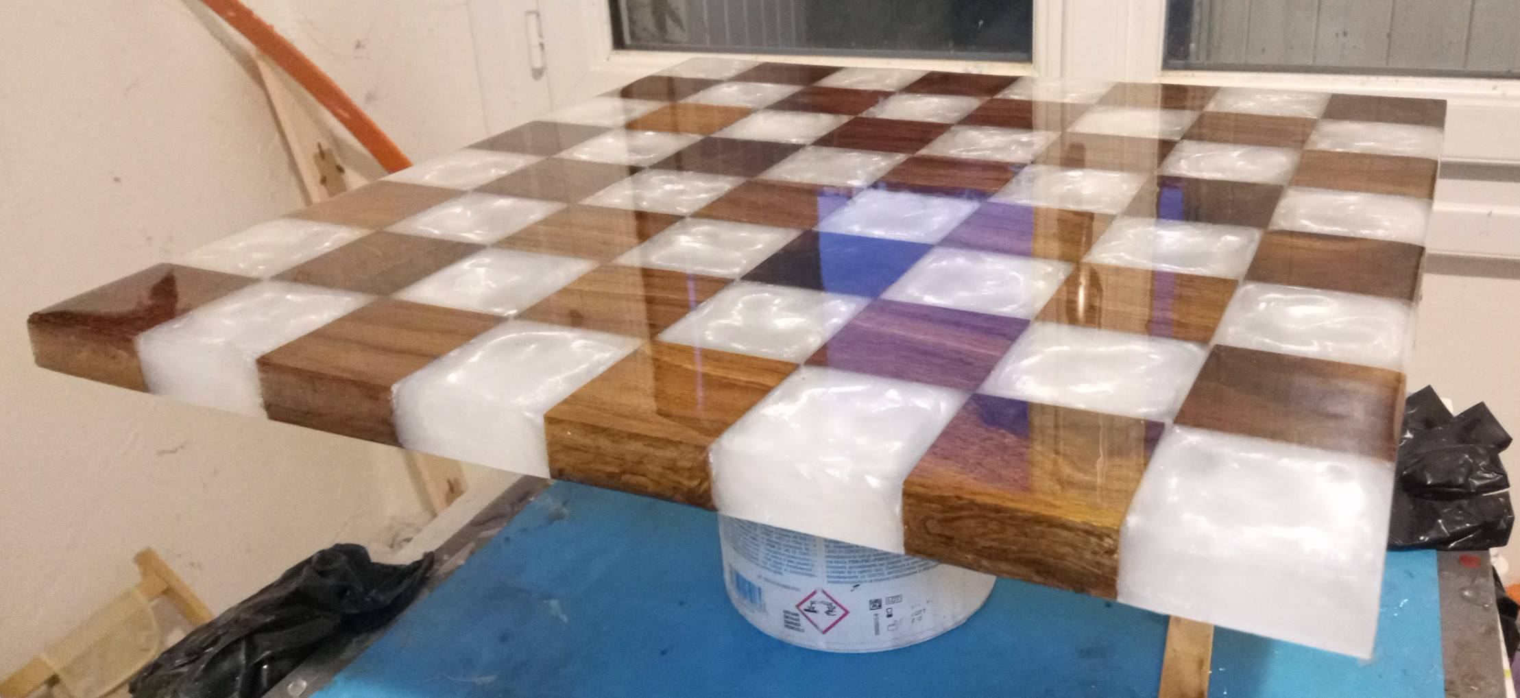 j'attaque un echiquier en orme et epoxy blanc et un de 50x50 ( cases) en chhene
