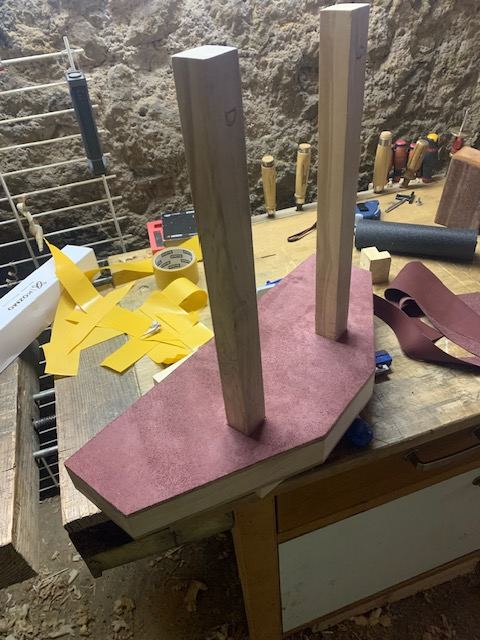 Je pense que j'aurais dû attendre d'avoir installé la vis pour coller le cuir. Je verrai bien comment ça se danse plus tard.