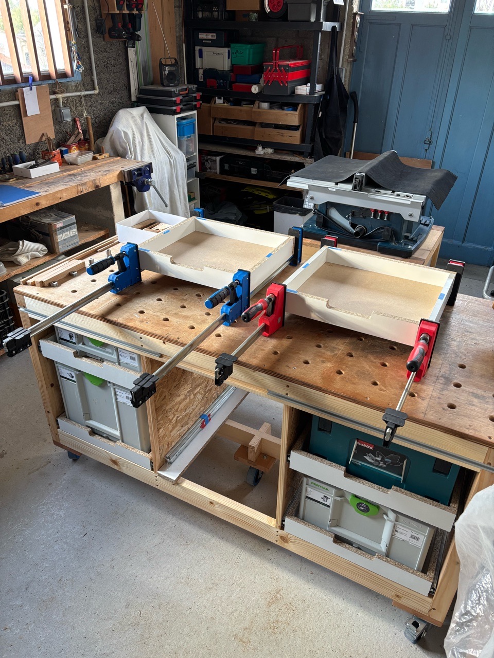 Ce n’est vraiment pas ce que je préfère réaliser, mais l’objectif est de limiter au maximum le temps perdu avec l’électro-portatif, et le rangement de l’atelier y participe pleinement.