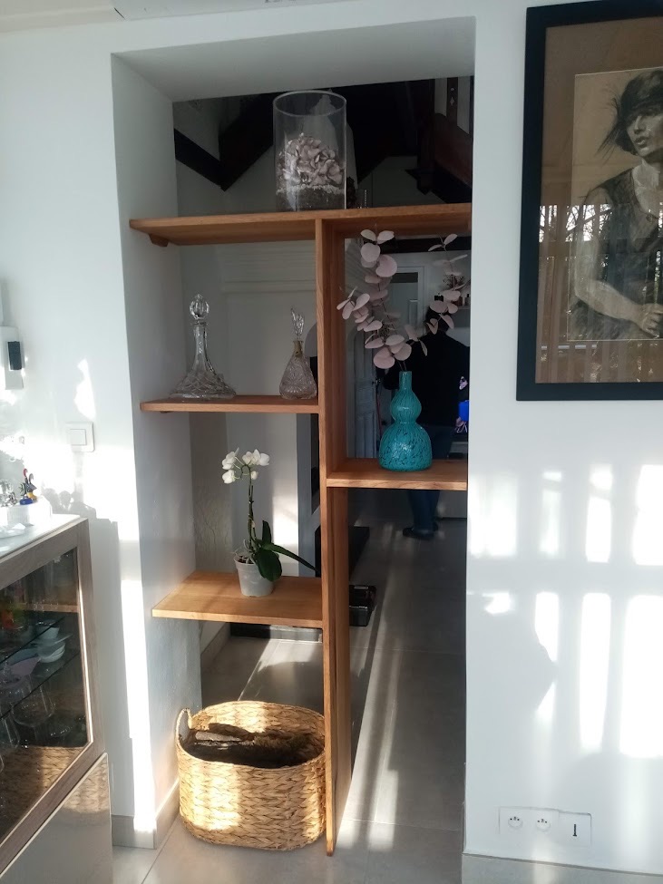 J'ai installé cette étagère claustra dans une ancienne embrasure de porte chez des copains !