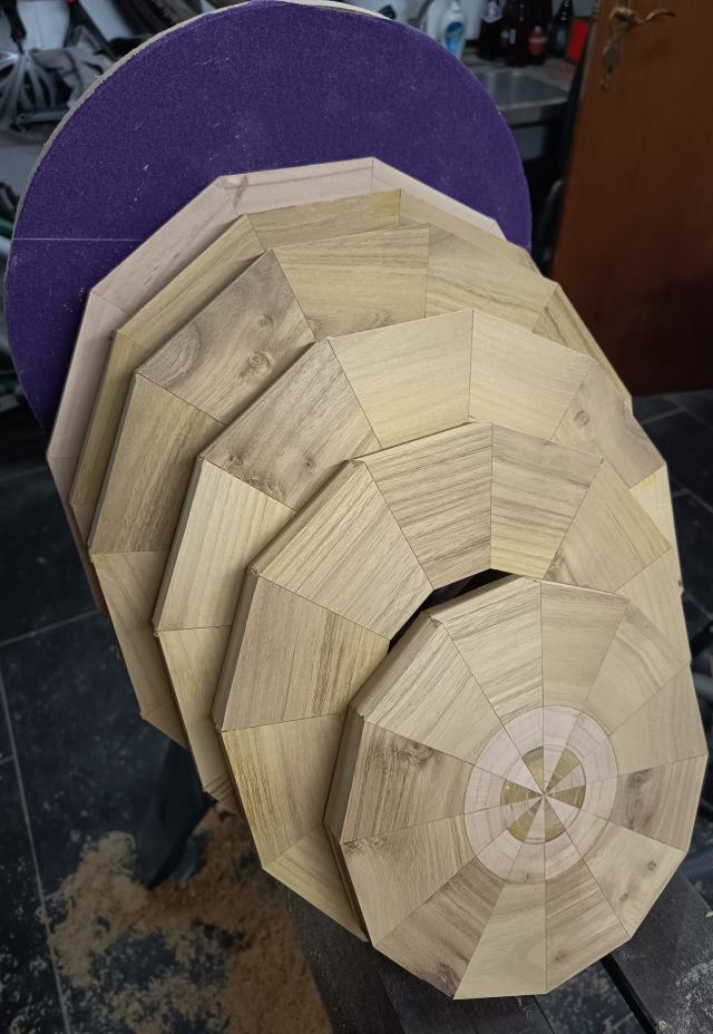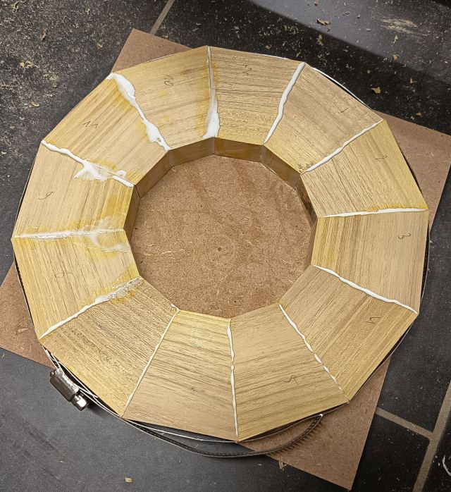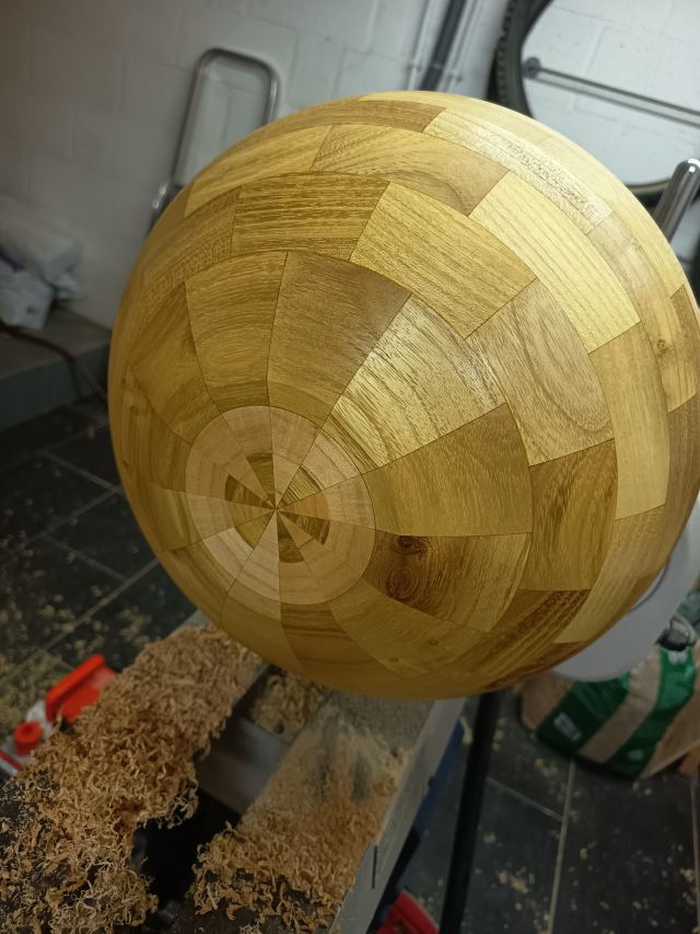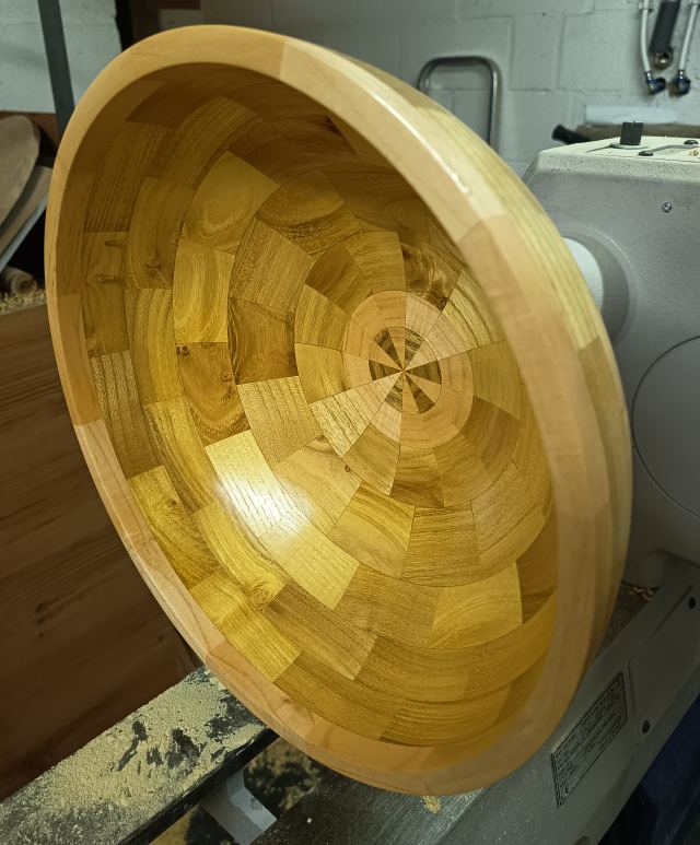 Réalisation d'un bol segmenté en robinier et en érable de 32 cm de diamètre