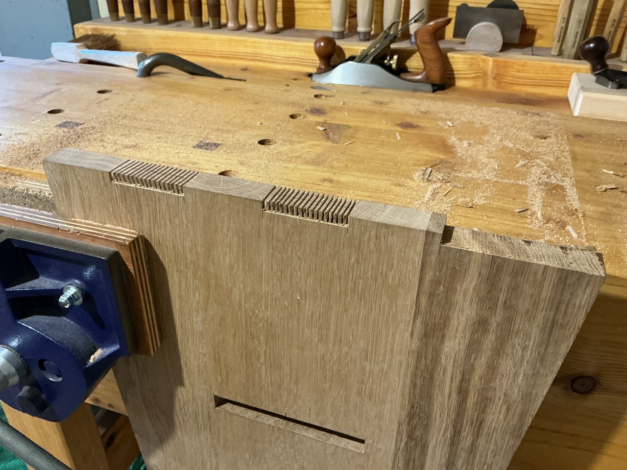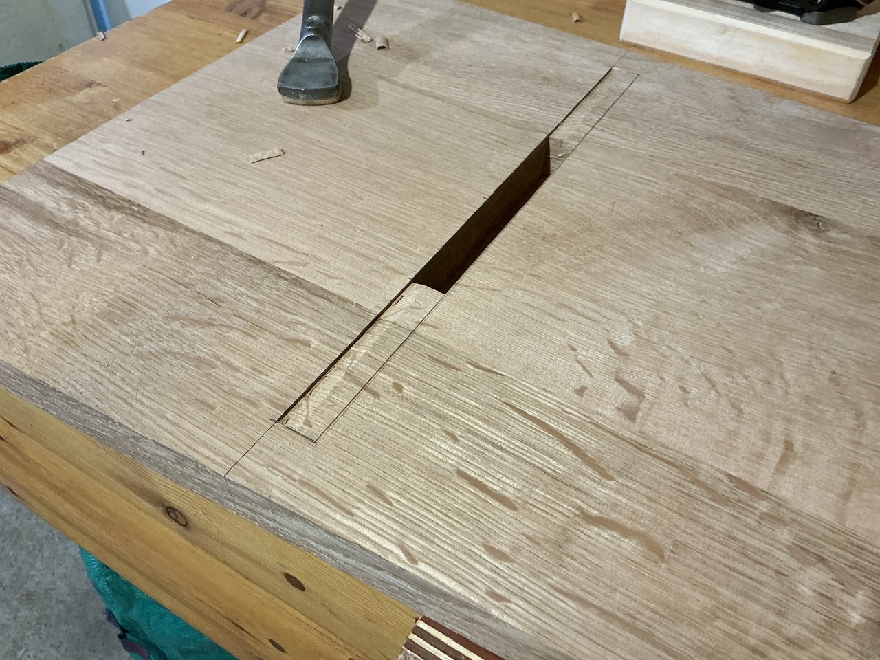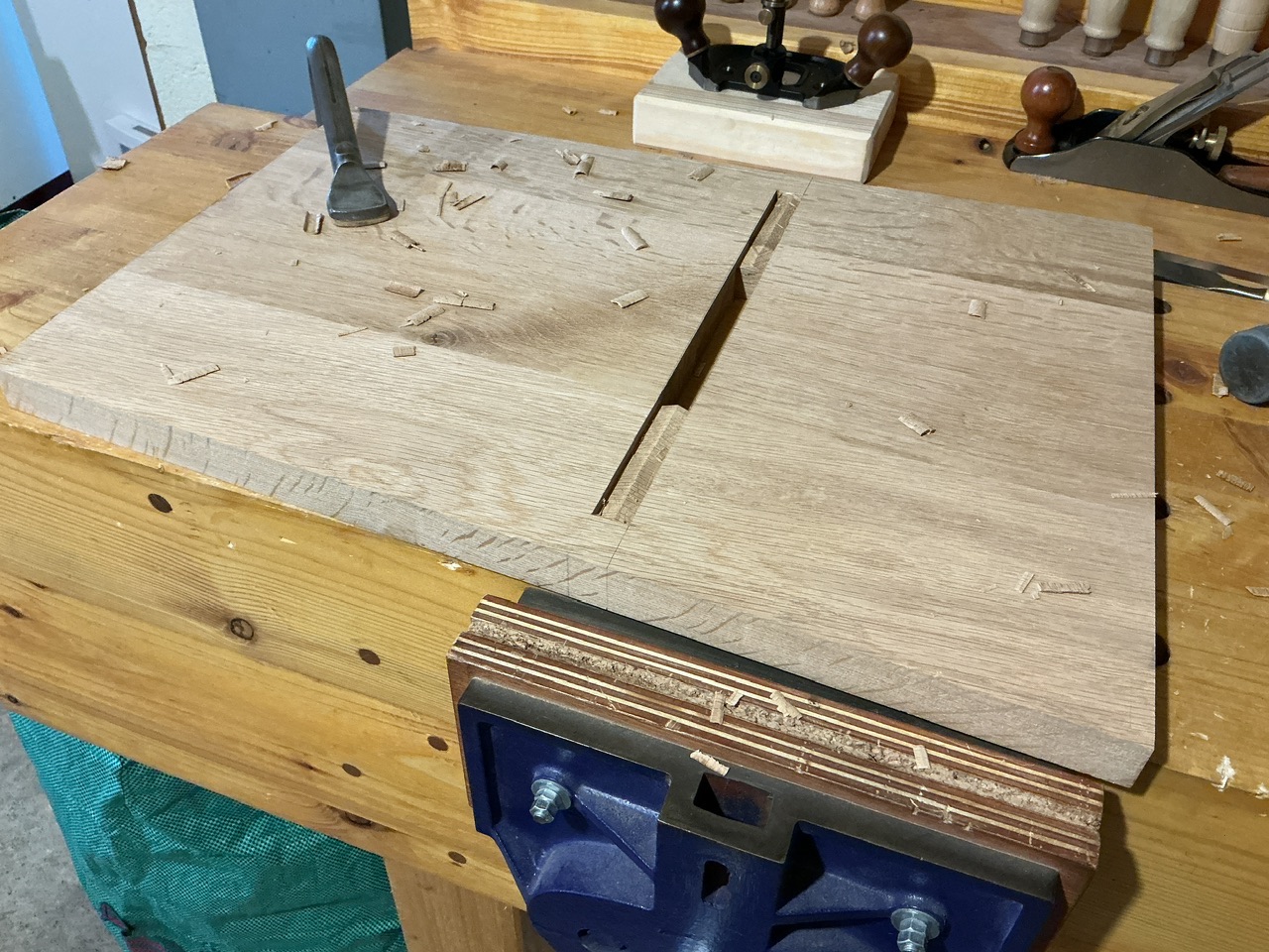 (Je ne fait que reproduire ce que Paul Sellers montre dans ses vidéos. Et rien à dire, ça fonctionne. Faut juste être vigilant quand on tape verticalement à être bien d’équerre).