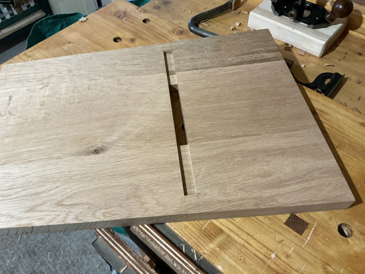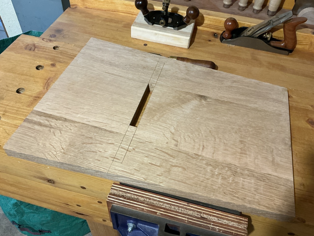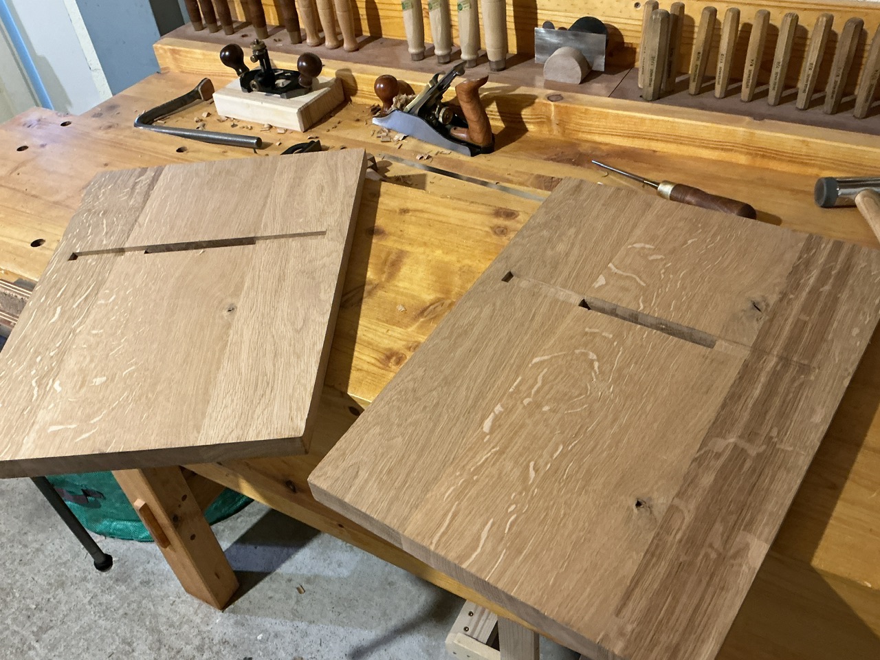 (Je ne fait que reproduire ce que Paul Sellers montre dans ses vidéos. Et rien à dire, ça fonctionne. Faut juste être vigilant quand on tape verticalement à être bien d’équerre).