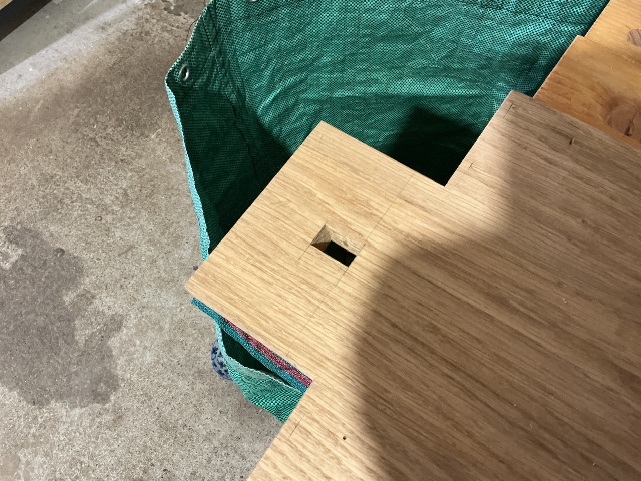 Dernière grosse étape, les entailles dans le plateau pour la liaison avec le piètement.