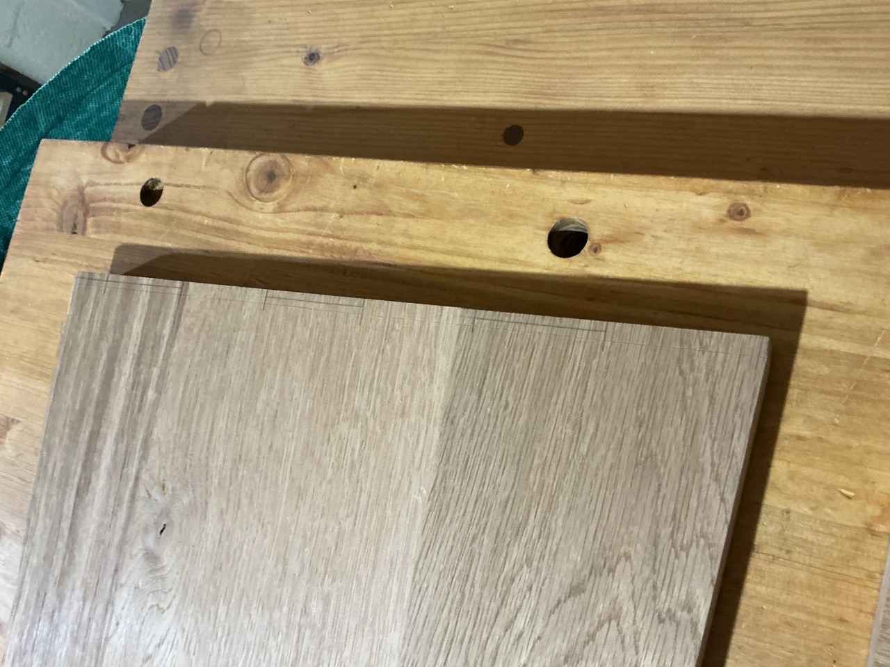 On peut aussi voir une lame avec une largeur variable. Ça c’est parce que j’ai fait le collage avant de raboter les parements, et qu’une sorte de vernis bien sombre cachait ce défaut (si un jour je croise les anciens propriétaires de ce bois ils m’entendront…).