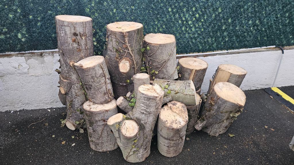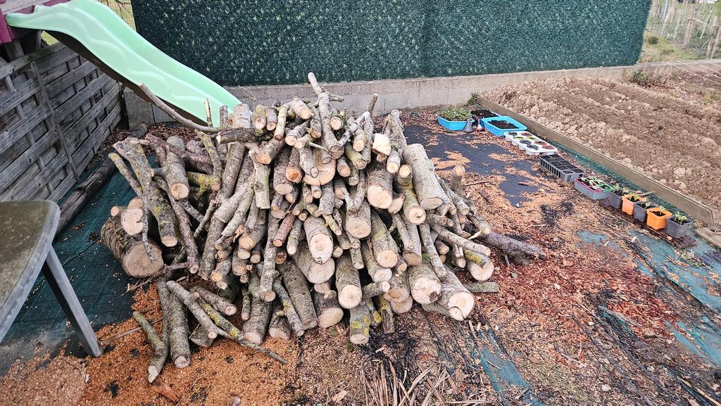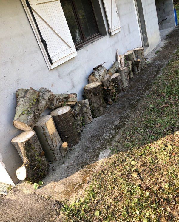 Après avoir récupéré un premier lot de buches de robinier (merci pour l'identification), je viens d'en dénicher un second second. Mais ce n'est pas le même type de bois.