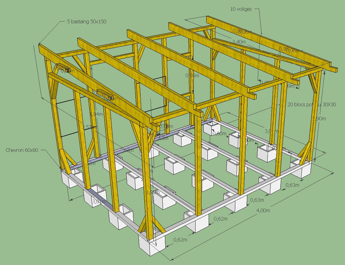 Petite remarque sur les bastaings, chez moi ils font 160 x 63.