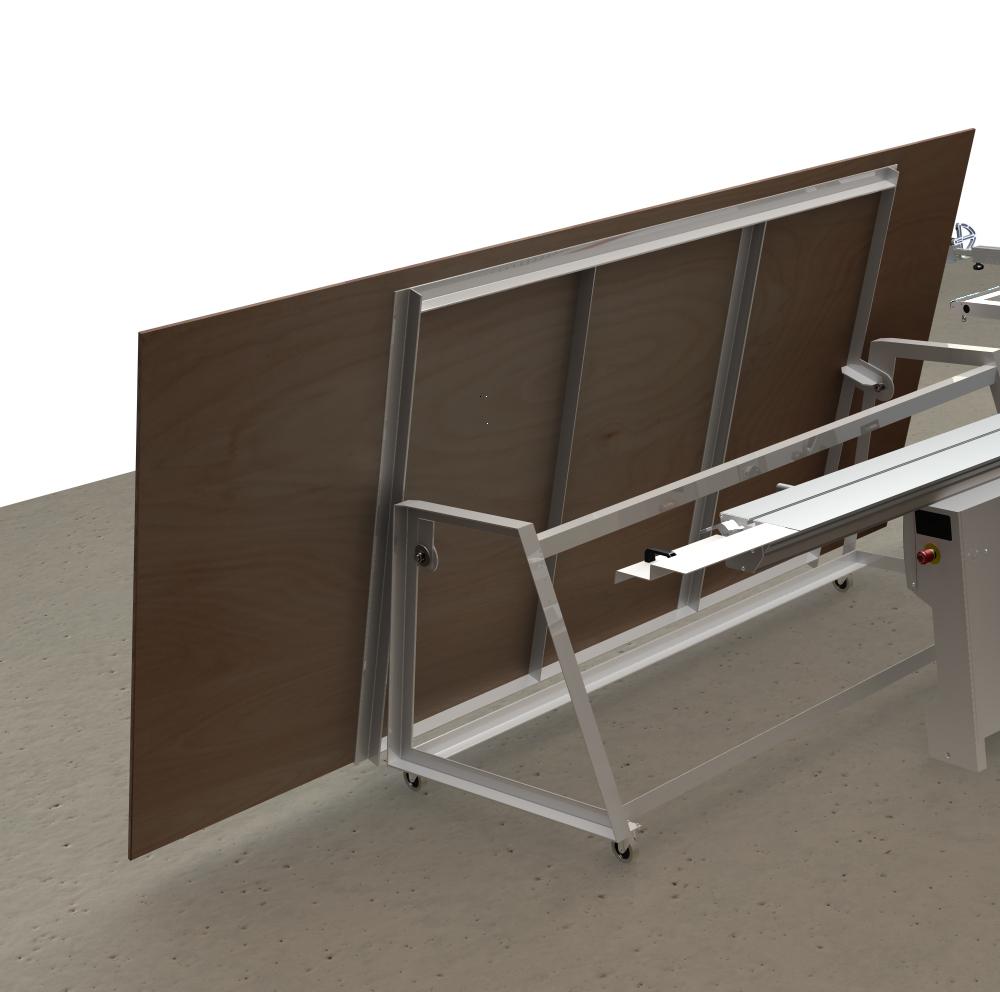 Cette table me permet désormais de basculer vers ma scie à format des panneaux d’environ 80 kg sans difficulté, chose qu’il m’était très difficile de faire seul avant. Mais elle pourrait, avec quelques adaptations, servir de table pour la découpe de panneaux avec du portatif ou autres usinages. Je dois encore y visser des bandes de glissement en téflon pour éviter de marquer les panneaux.