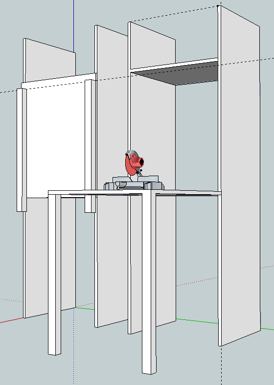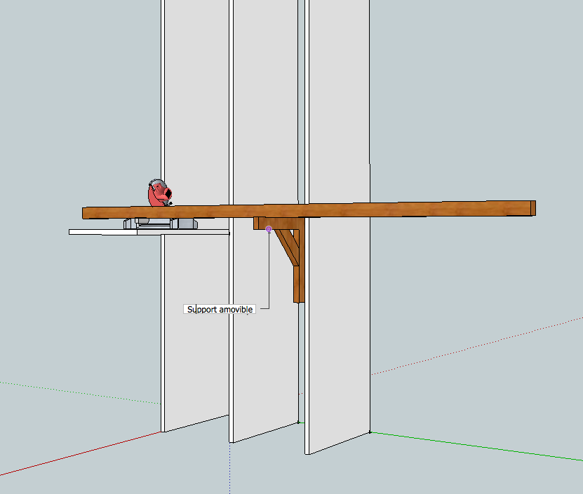 Je pensais dans un 2e temps si le besoin s'en fait sentir faire un système de "servante" en faisant des supports amovibles que je fixerais sur le reste du meuble comme dans le dessin ci-dessous, je pourrais y ajouter une butée alignée dans le plan de la scie.