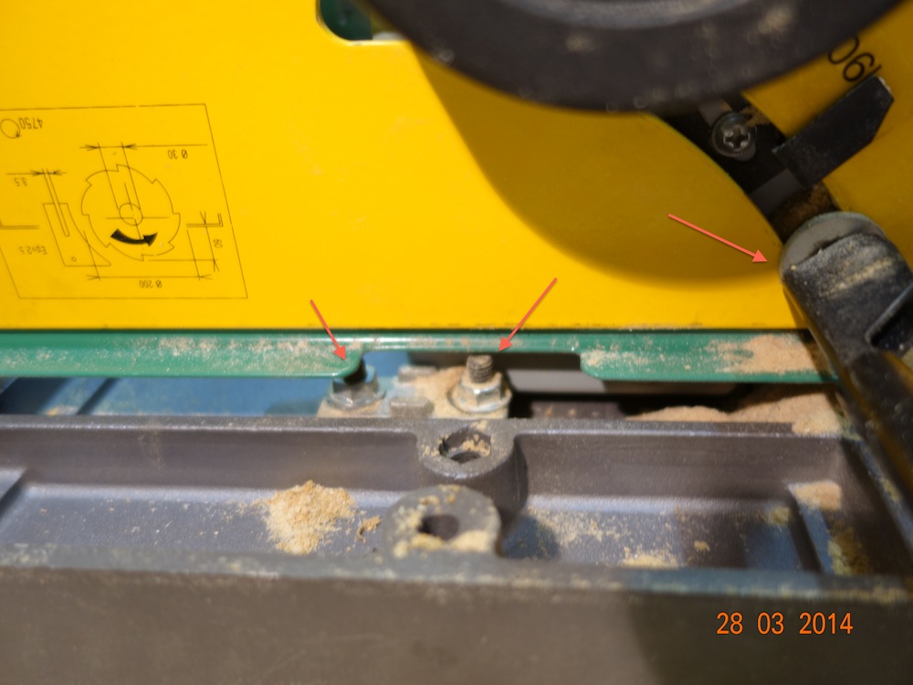 tu as 2 x 2 vis a desserrer pour mobiliser le bloc "moteur-lame" de droite a gauche