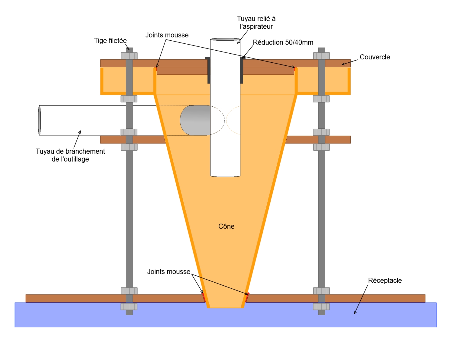 Je pense que ton pb vient du diamètre de ton aspi, mais met un croquis du plan de coupe comme dit willow...