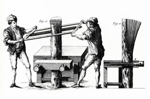 refendre : Scier en long une pièce de bois en deux pièces égales.