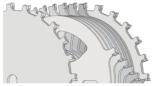 Quand tu parles de voile, tu parles de l'épaisseur du corps de la lame ie les dents sont soudées sur l'âme de la lame et dépassent largement de celle ci. Si j'ai bien compris...