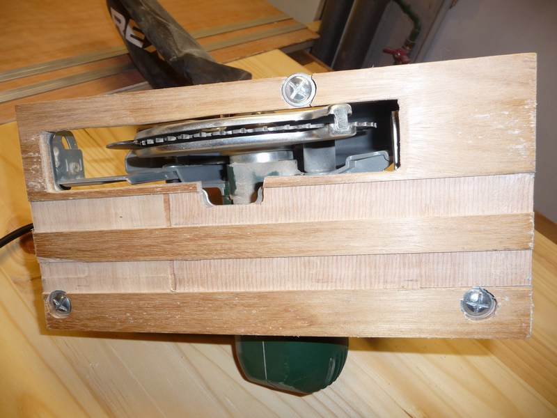 1 petite plaque de contreplaqué de 5mm et de la taille de la semelle de votre scie.
