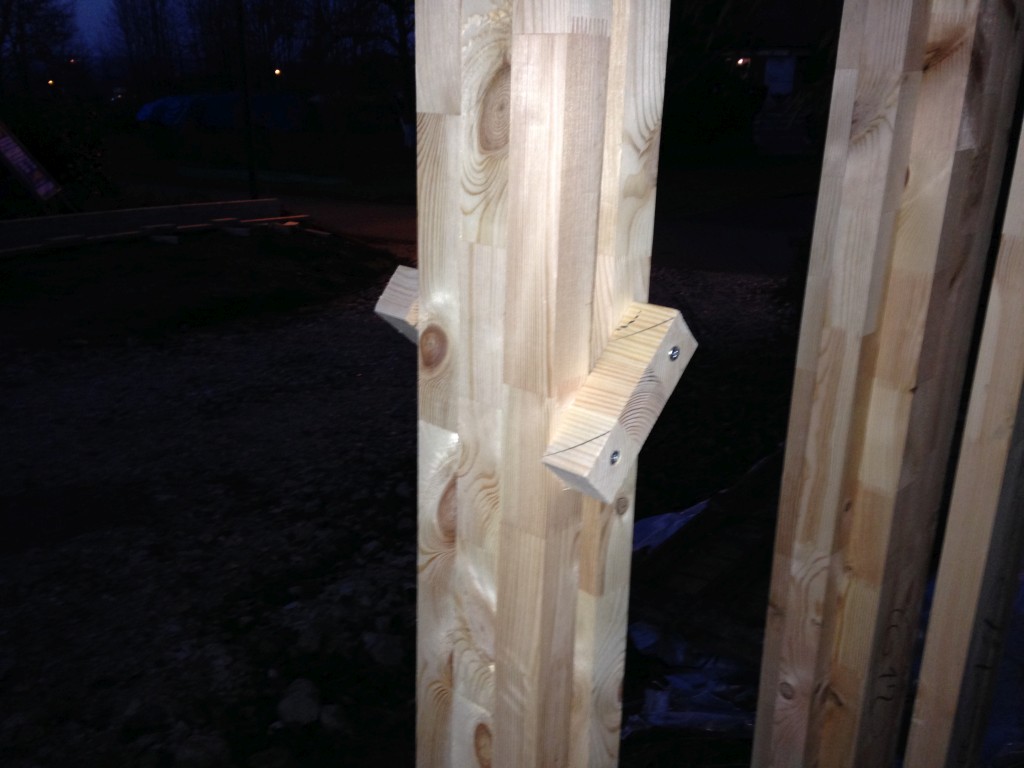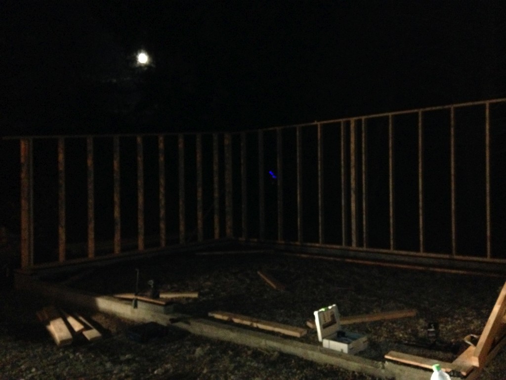 résultats du travail préparatoire : 2 murs montés et fixé en 4h de boulot !!
