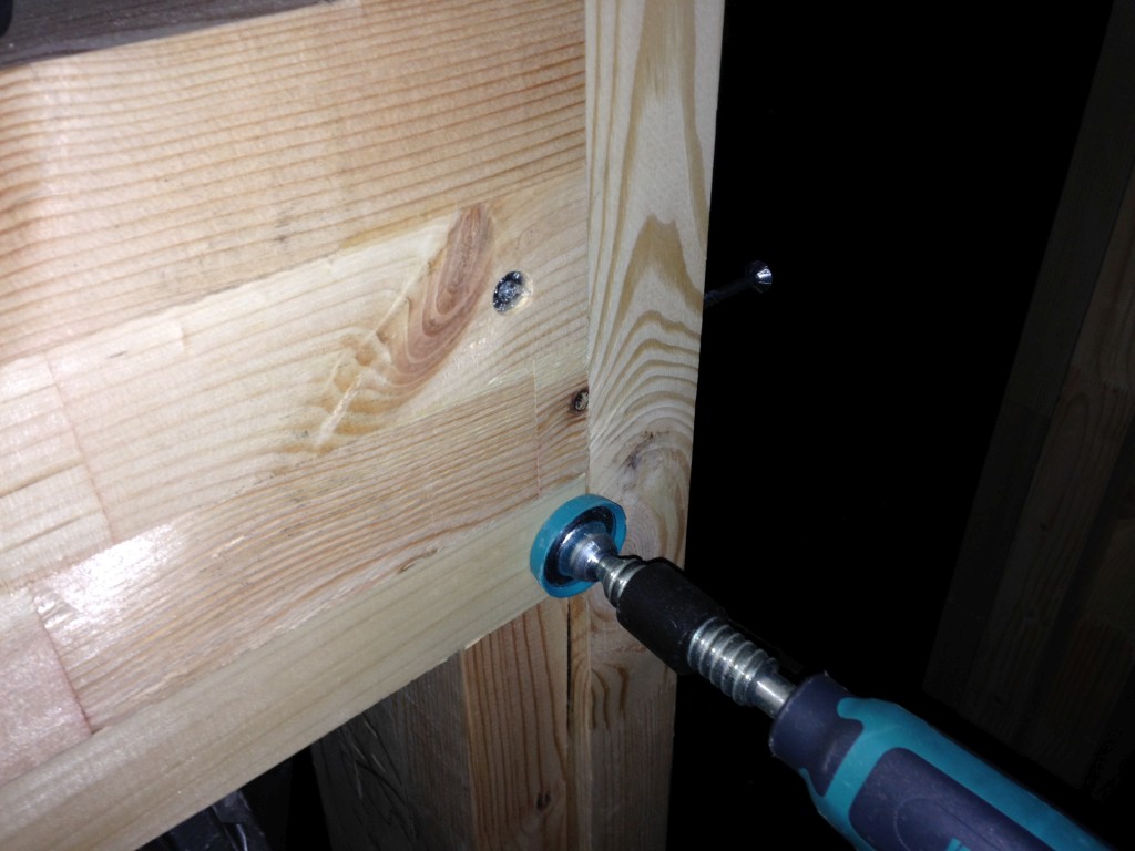 - J'ai vissé 1 cale de chaque côté à l'intérieur de la porte.